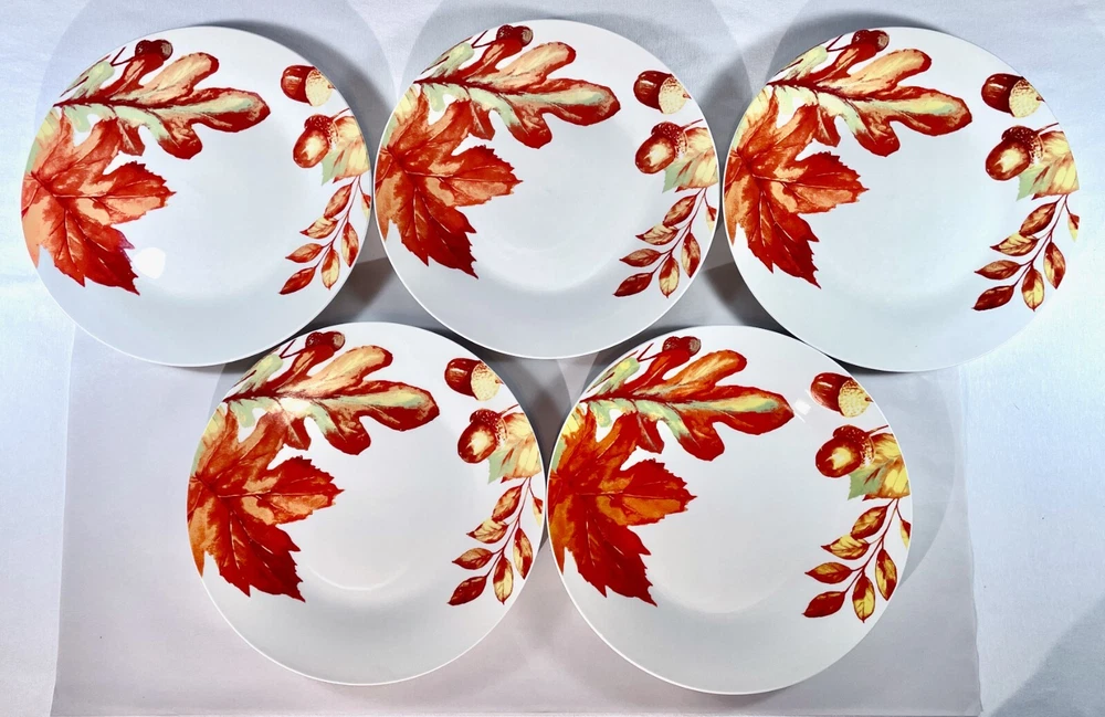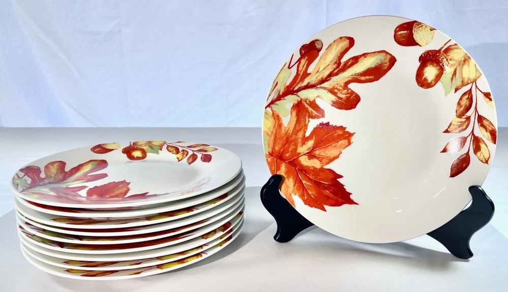 Set (10) Royal Norfolk Fall / Autumn Leaves & Acorns, Thanksgiving Dinner Plates Super nice larger set of lovely Royal Norfolk plates from an Estate in the Pacific Northwest. Enough plates for a large family gathering and then some! Fast shipping just in time for the holidays!! ๐๐ SELLER NOTES: Excellent Condition - Near new looking with very light wear. No chips or cracks. Really nice! See photos and use zoom. Elevate your Thanksgiving table with this Royal Norfolk 10-piece dinner plate set, featuring a charming fall leaves and acorns pattern. Each plate measures 10 1/2" wide, perfectly sized for your festive meals. The rich blend of red, orange, yellow, green, and white hues brings the essence of autumn to your home, making every dining experience a harvest-inspired celebration. Crafted from high-quality ceramic, these plates boast a glossy finish that enhances the intricate design and ensures durability. Whether you're hosting a dinner party or enjoying a family feast, these plates are sure to impress your guests and add a touch of traditional elegance to your table setting. Our goals are to provide excellent service, represent items accurately, and ensure smooth transactions. Please review photos closely and use zoom before purchasing. Message us anytime and we'll get back ASAP. We pack and ship with an abundance of care. SHIPS FAST VIA INSURED USPS usually same business day and at least within one business day. Thanks for looking! rtg