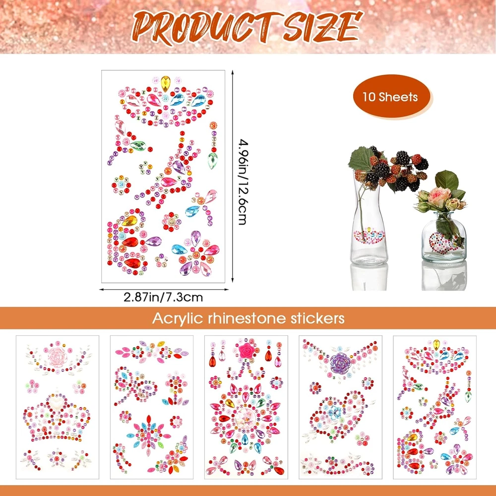 Store New Arrivals Add to Favorite View Feedback Contact 10 Sheets Self Adhesive Jewels Stickers, Gem Stickers for Crafts, Rhinestones Stickers, Acrylic Bling Stickers for Scrapbook DIY Crafts Description Reusability Single Use Item model number 565520_1_72rB3kA6L Item dimensions L x W x H 9.45 x 6.3 x 0.67 inches Product Dimensions 9.45 x 6.3 x 0.67 inches Special Feature Self-adhesive Number of Items 10 Color Colorful Pattern Floral Country of Origin China Style Contemporary Embellishment Gem stickers Item Weight 1.76 ounces Theme Christmas Recommended Uses For Product Scrapbook Surface Recommendation Wall Material Acrylic Finish Type Polished Item Form Sheet Shape Multiple Unit Count 10.0 Count Cartoon Character Heart 【Multiple Shapes】Our rhinestones stickers come in various shapes, such as butterflies, flowers, hearts, whales, crowns, leaves, hats, etc. There are more interesting patterns waiting for you to discover 【Self-Adhesive】Our gem stickers are self-adhesive designs, which can be easily pasted to the surface you need and easy to peel off for convenience. 【Widely Used】Jewel stickers are suitable for scrapbooks, mugs, mobile phones, photo frames, faces, nails, bodies, walls, computers, etc. You can paste them on any flat surface you need 【Ideal Gift】Gemstone stickers are suitable gifts for your family or friends on Christmas, birthdays, parties, anniversaries, etc. They will love this cute sticker 【You Will Get】The set contains 10 sheets of rhinestone stickers, of various shapes, and the quantity is enough for your daily DIY use PACKING LIST: 10 sheets*Rhinestones stickers DESCRIPTION: Color: Colorful Quantity: 10 sheets Product size: single sheet 7.3*12.6 cm Policy on Product Sourcing and Fulfillment Dear Valued Customers, We would like to clarify an important aspect of our business operations to ensure transparency and trust in our relationship with you. Product Fulfillment: Fulfillment by Amazon (FBA): The products are stored in Amazon Fulfillment Centers. This storage solution ensures that the inventory is kept in a secure and climate-controlled environment, which helps maintain the quality and safety of the products. Efficient Delivery: Utilizing Amazon's fulfillment services allows us to leverage their robust logistics network to provide you with fast and reliable shipping. This means you receive your purchases in a timely manner with the added assurance of Amazon's trusted delivery systems. Customer Assurance: Quality Control: Every product is carefully selected and undergoes rigorous quality checks before being listed for sale. Our commitment is to provide you with high-quality items that meet your expectations. Secure Storage: Amazon's Fulfillment Centers are renowned for their high standards of security and efficiency. Your products are stored safely until they are shipped to you. Customer Support: Should you have any questions or concerns regarding your purchase, our customer support team is readily available to assist you. We are dedicated to ensuring your satisfaction with every transaction. We appreciate your business and are committed to providing you with a seamless and satisfactory shopping experience. Thank you for your trust and understanding. Sincerely, -Manager- Shipping Policy and Expectations Dear Valued Customers, We are committed to ensuring that your package arrives as quickly as possible. However, we kindly ask for your understanding regarding certain factors that may occasionally affect shipping times. Our Commitment: Prompt Processing: We strive to process and dispatch your orders promptly to minimize any delays. Reliable Shipping Partners: We work with reputable shipping companies to ensure your packages are handled with care and delivered efficiently. External Factors: While we do everything within our power to expedite your order, please note that some factors are beyond our control: Weather Conditions: Severe weather can impact shipping routes and cause delays. High Postal Traffic: During peak seasons, such as holidays, the increased volume of packages can lead to longer delivery times. Shipping Company Performance: The performance and schedules of shipping companies may vary, potentially affecting delivery times. We appreciate your patience and understanding in these situations. Rest assured, we are doing everything possible to get your package to you as soon as possible. Customer Support: If you have any questions or concerns about your order, please do not hesitate to contact us. Our customer support team is here to assist you and provide any necessary updates on your shipment. Thank you for your trust and continued business. Shipping Policy and Customer Satisfaction Shipping Information: Service Area: We offer shipping to the lower 47 states. Please confirm with us about the delivery date before completing your purchase. Thank you. Address Requirements: We do not accept P.O. Boxes. Please provide a physical address for delivery. Shipping Restrictions: Unfortunately, we are unable to ship items to the state of Ohio and California due to shipping agreements and restrictions. International Shipping: eBay International Shipping Hub: For shipping outside of the continental USA, we only use eBay's International Shipping Hub. The item is shipped to Illinois and then sent to the rest of the world. Duties and Taxes: International customers are responsible for all duties and taxes. Please continue to check out to calculate the shipping costs for your country. Inquiries: Messages regarding eBay's International Shipping Program must be directed to eBay exclusively. Customer Satisfaction: We try our very best to ensure every customer is completely satisfied. If there's a problem, please message us! We're happy to help. If you are happy with your purchase, we would really appreciate your positive feedback. Once positive feedback is left, our system will automatically leave positive feedback in return. Thank you for your business and for