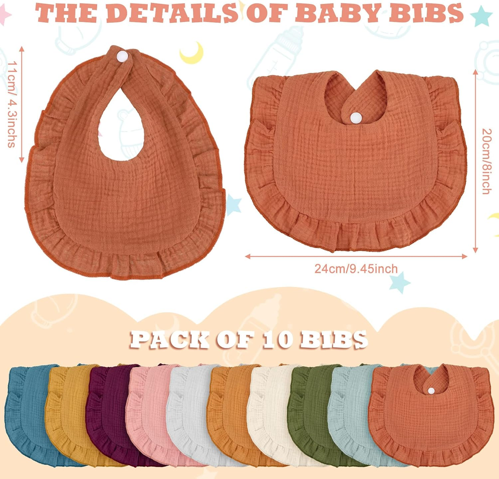 $ 13.2Pastel Muslin Baby Bibs with Scallop Edge & White Trim - 5 Pack 100% Cotton