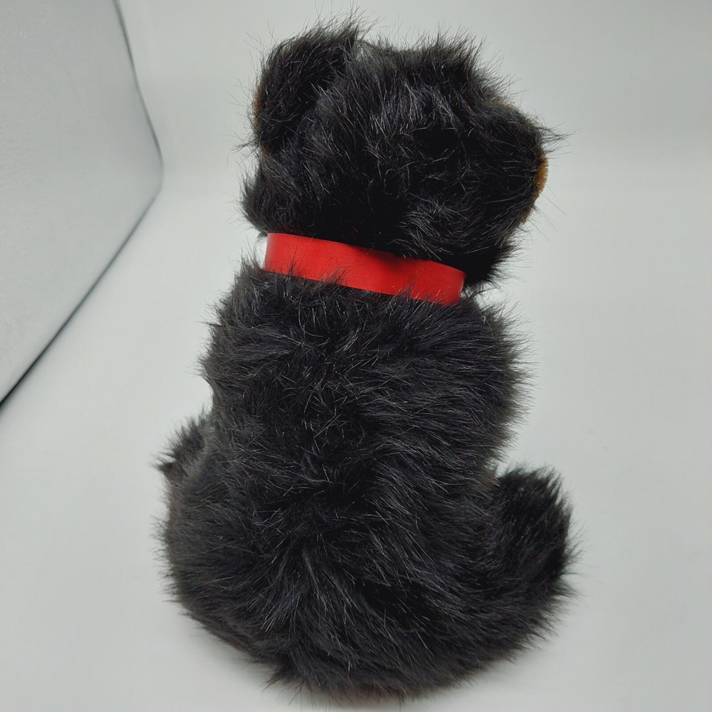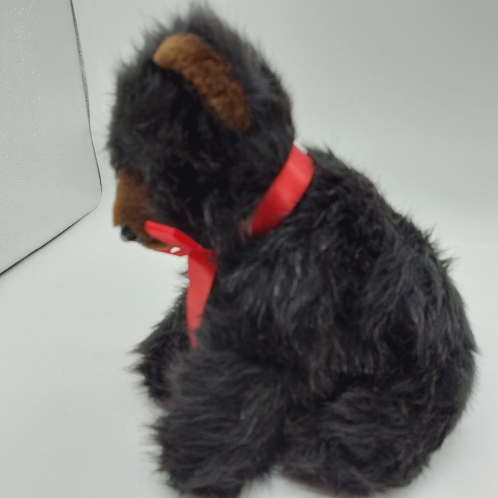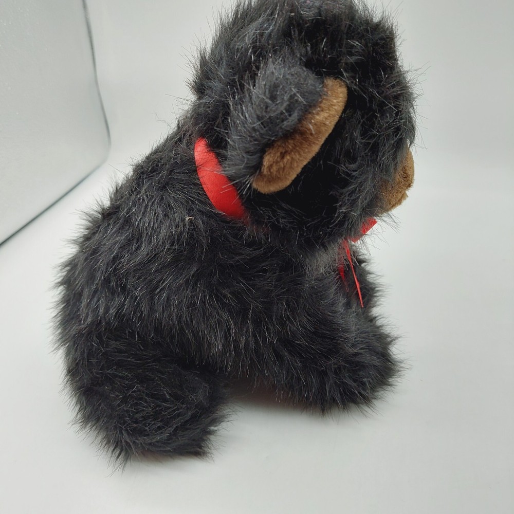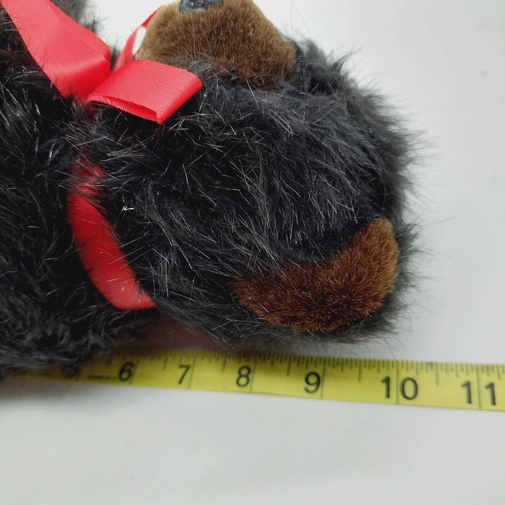 Toymex Grizzly Bear Sitting Black Tan Bear 10” Plush Stuffed Animal Red Ribbon