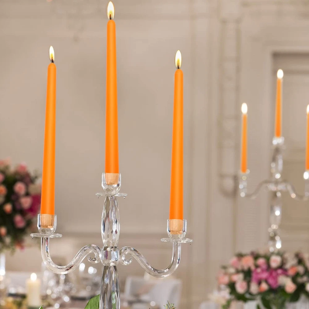 10 Unscented Orange Taper Candles for Elegant Home Decor Set of 20 Dripless 10 Inch