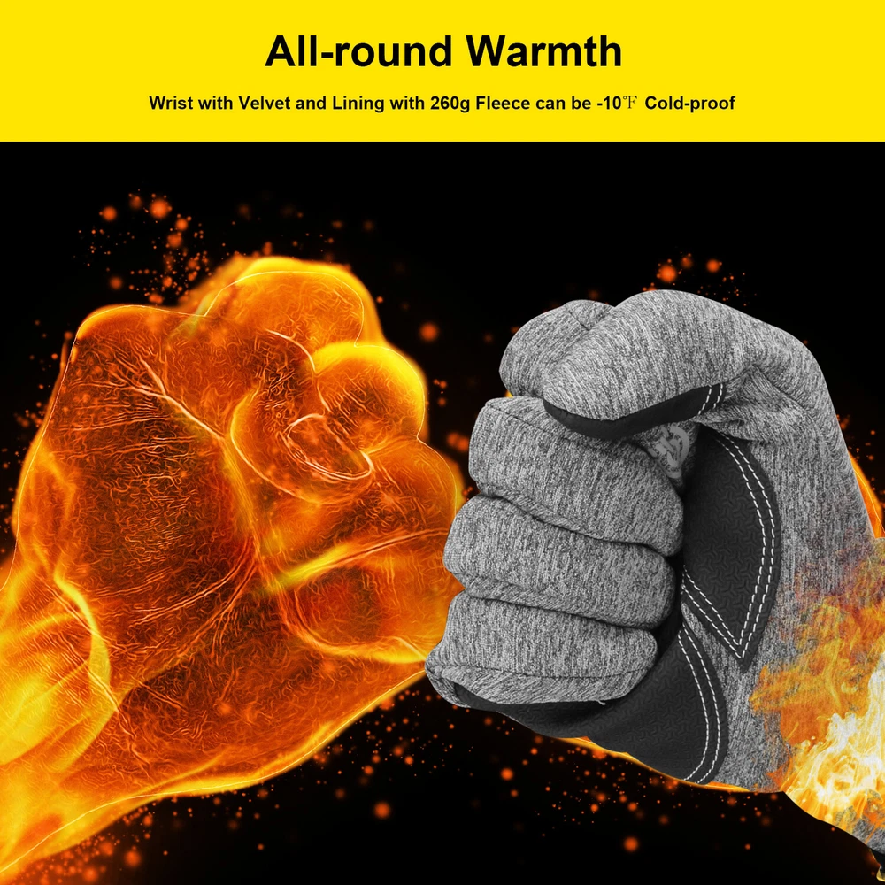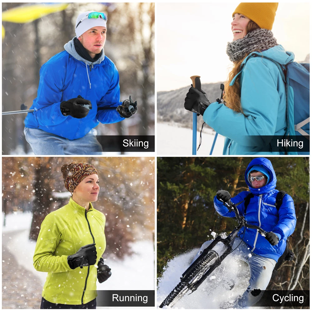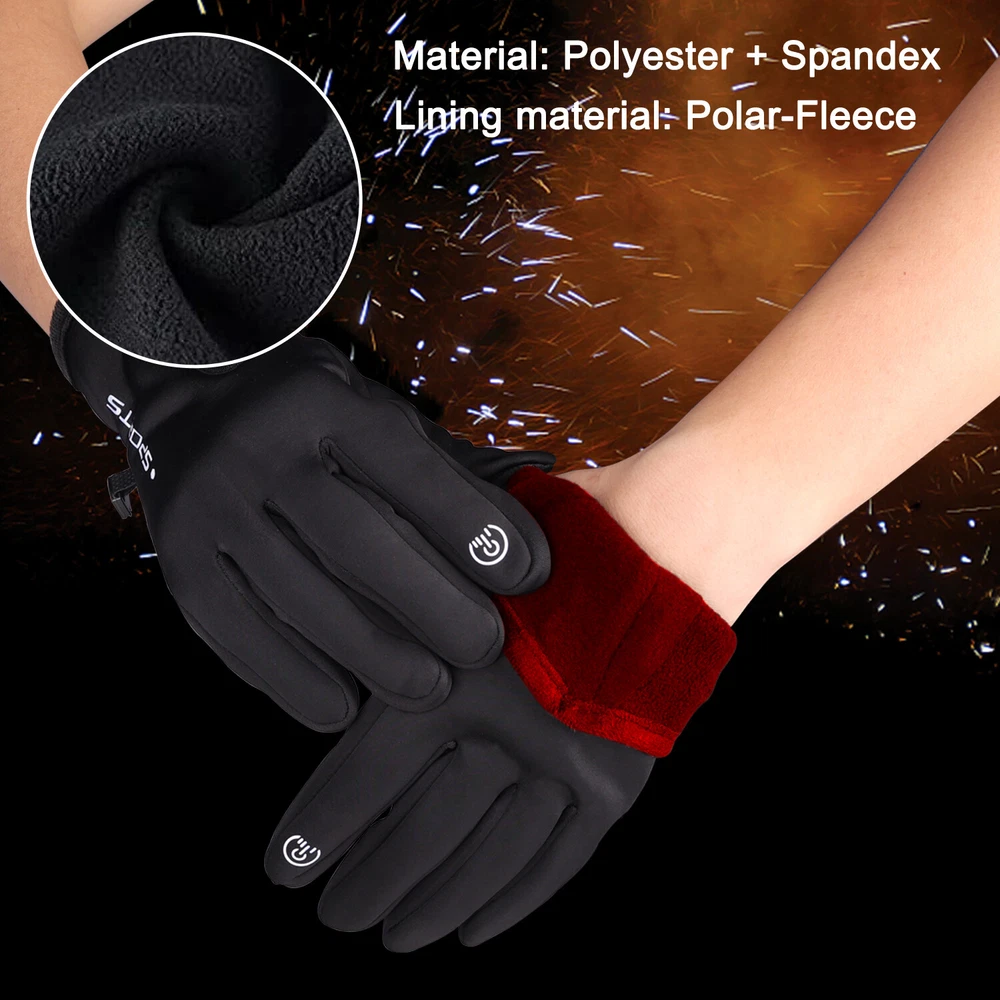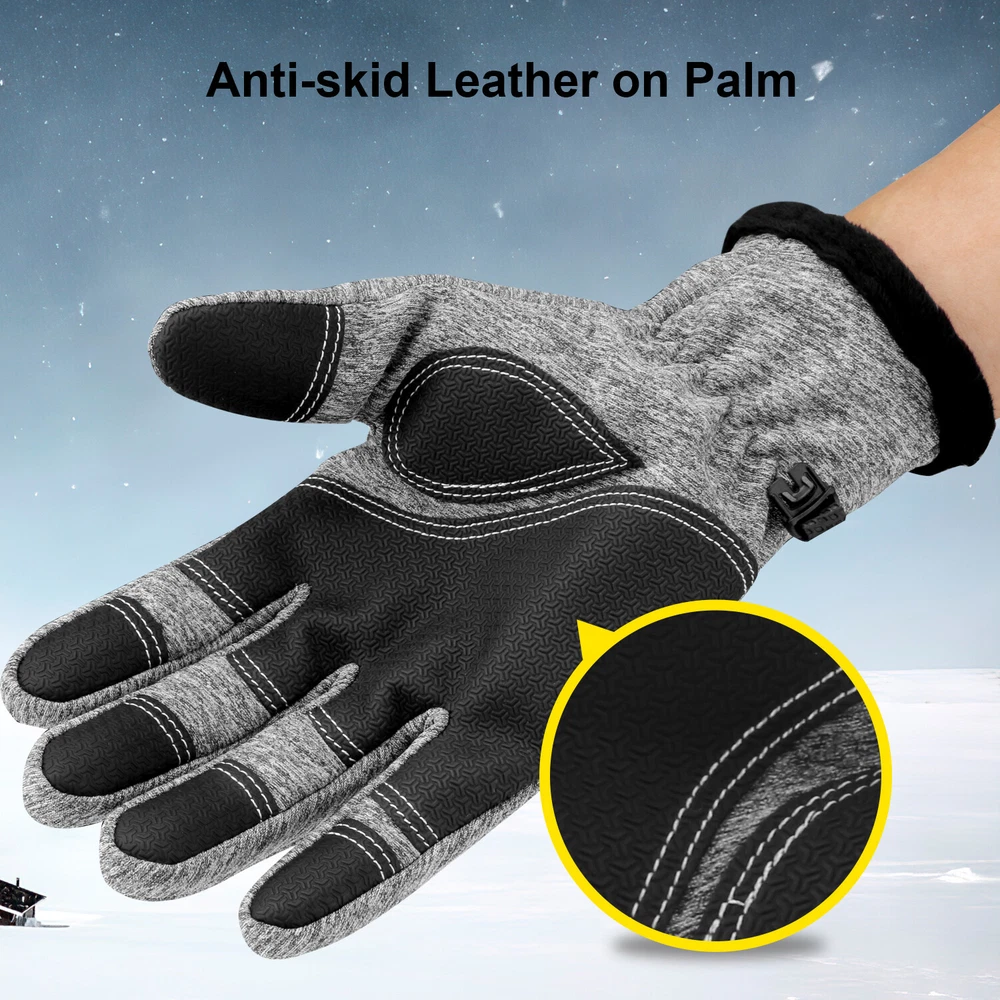 -10℃ Waterproof Winter Warm Ski Gloves Thermal Touch Screen Motorcycle Snowboard Decription: Our products are made of woolen windproof fabric for added warmth and comfort. Adjustable zipper for different size hands and easily take off gloves.Touch the screen with full-fingered PU gloves, more sensitive and no harm.s. This pair of gloves is worth having,In this winter. Size: Size S M L XL XXL Palm Width 2.76-2.95in 2.95-3.15in 3.15-3.54in 3.54-3.94in 3.94-4.72in Palm Circumference 6.69-7.08in 7.08-7.48in 7.48-7.87in 8.26-8.66in 8.66-9.49in Feature: [ Keep Hands Warm & Comfortable] Combined with the warm and soft polar fleece lining and stretchy cuff, these winter gloves not only lock the temperature on your hands and reduce the heat loss, but also absorb moisture and sweat. Say goodbye to the clamminess, your hands will always warm and dry while wearing these warm gloves. [Excellent Waterproof & Windproof ] with high-density waterproof membrane on the surface layer, these cold weather gloves for men can keep your hands dry and warm against melting snow or drizzle. No longer to endure the cold wind or wet to take the heat away in your winter daily activities. [Sensitive Touchscreen & Safety Anti-Slip Silicone] These women running gloves adopted with high-sensitivity conductive material on the thumb and index, help to control all your smart devices conveniently with gloves on. Coated with high-quality silicone on palms and fingers for enhanced friction and grip. Contribute to a higher efficient on daily work. [Flexible & Lightweight ] Unique 3D tailoring and high-stretchy Lycra greatly improve the flexibility and comfort of wearing. These snow driving gloves will fit your hands perfectly like your second skin. So that flexible enough to enhance movement for all the activities. Lightweight and sleek design allow you to take them easily wherever you go. Please Note:Water Resistance (Not Waterproof),gloves should not be immersed in water for long periods of time. Package Included: 1 pair Waterproof Windproof Sensitive five-finger touch screen gloves. Contact us: If you have any questions, please feel free to contact us to resolve the issue before opening a case or Negative, Thanks a lot!