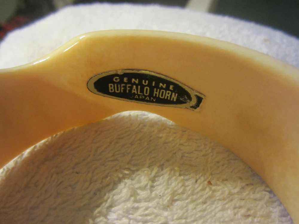 10" antique Genuine BUFFALO HORN BRACELET BANGLE Japan,wide ornate vtg