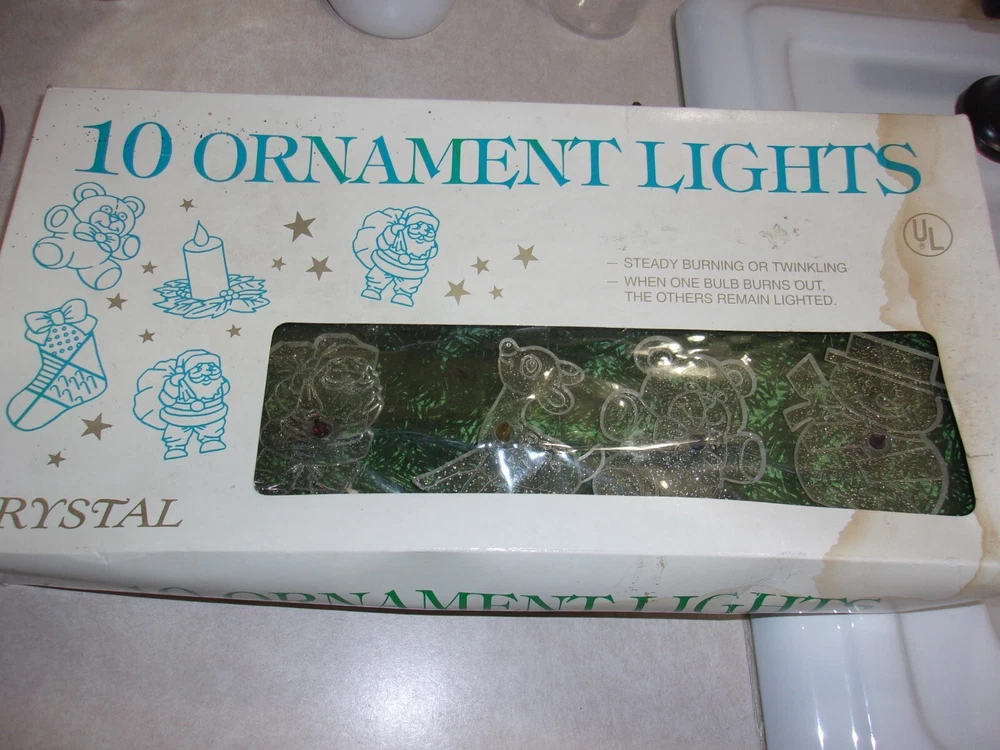 Brighten up your holiday decor with these charming Leco electric ornament lights. Designed to bring a warm, festive glow to your Christmas tree or mantelpiece, this set includes 10 plastic deer, Santa, teddy bear, bell, candy cane, circle, poinsettia, stocking, candle, and snowman figurines, each meticulously crafted to complement your holiday theme. The unbranded lights are perfect for creating a cozy Christmas atmosphere in any setting. Whether you're adorning your tree, crafting a centerpiece, or adding a festive touch to your home's exterior, these lights and ornaments will surely make your celebrations sparkle and shine. These say crystal ornaments on the original box. The box is water stained. These do work. Please email me with any questions. Thanks for looking.