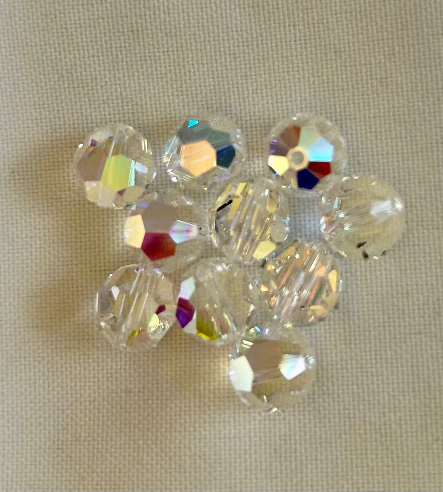10 pieces of Genuine Swarovski Crystal 10mm Crystal AB loose beads. These beautiful, new 5000 style round crystals are perfect for birthstone and holiday jewelry. Bridal / Wedding Jewelry Visit my store for other Swarovski crystal colors, styles and sizes including birthstone mixes . I also carry this style in the 4mm, 6mm and 8mm sizes. FREE SHIPPING AND HANDLING ON THIS ITEM!!!