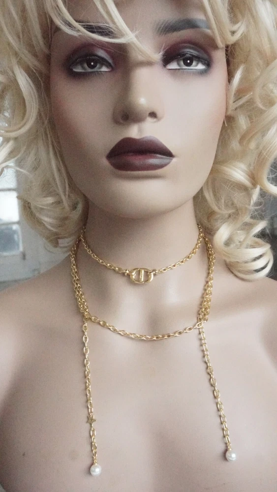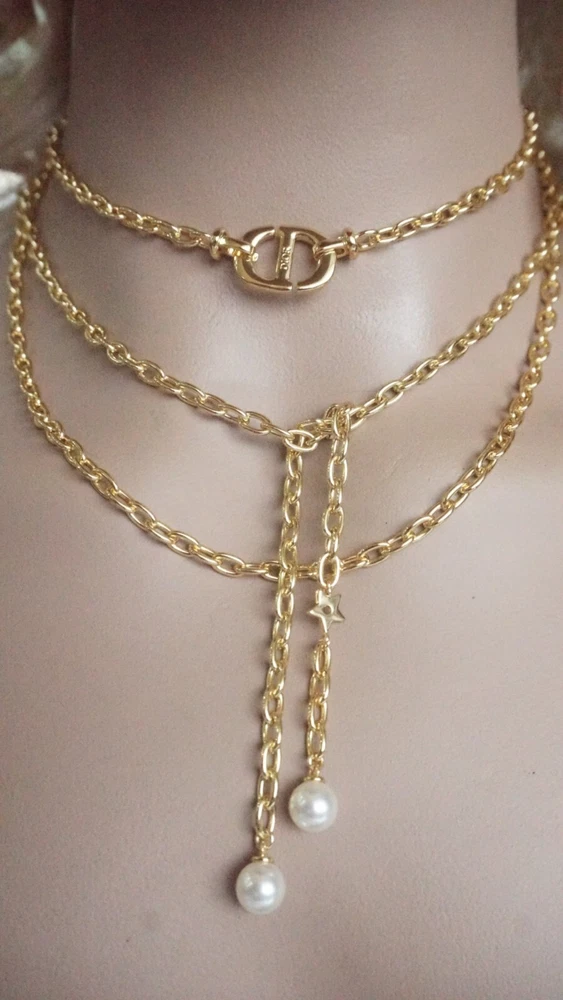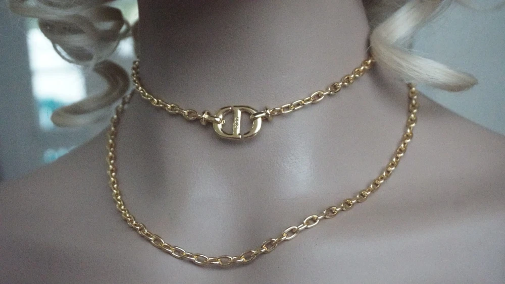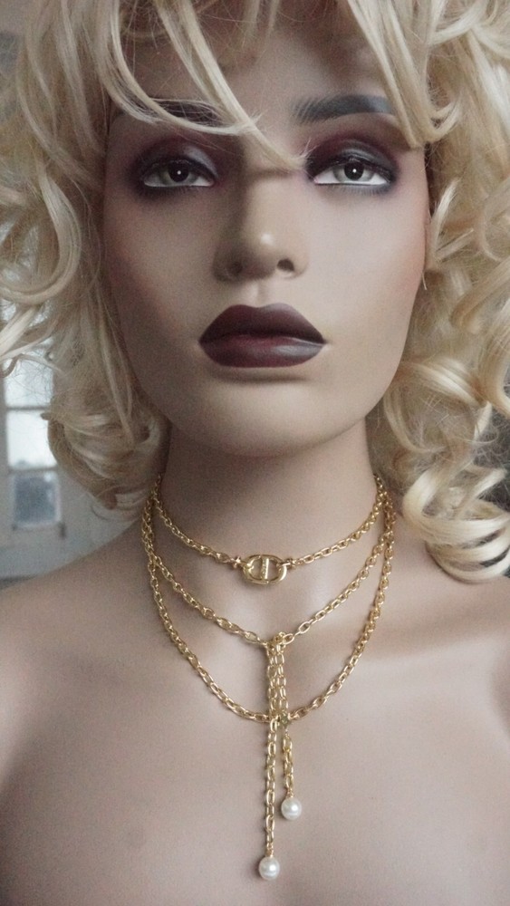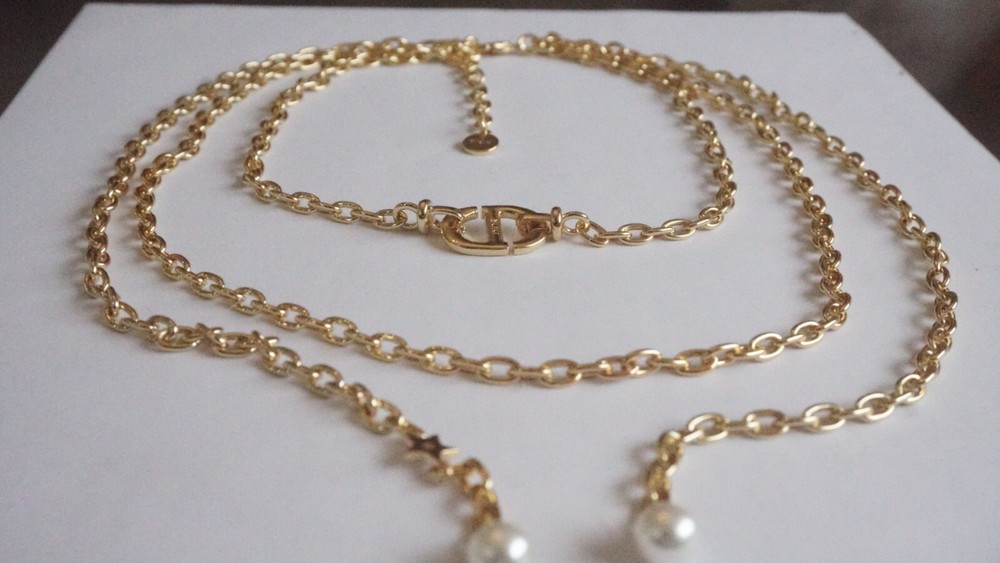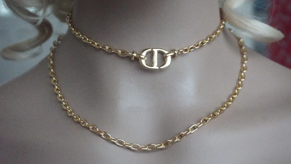 100% Christian DIOR Necklace. Logo CD Signature & box & dust bag Color: gold /