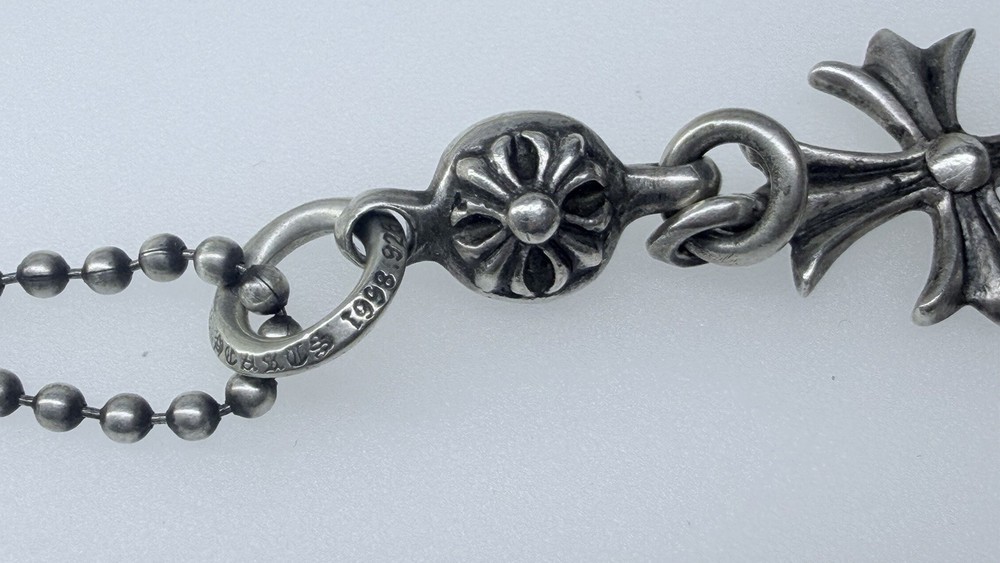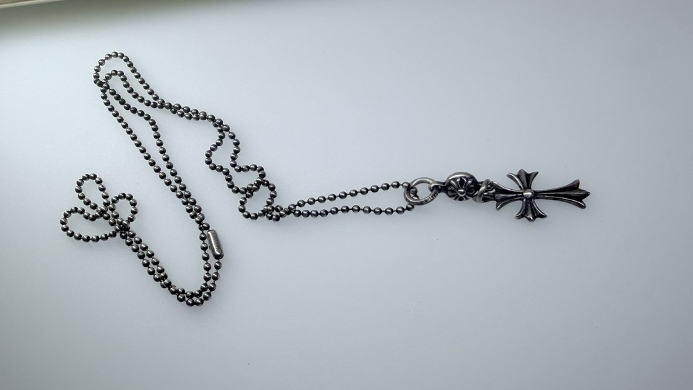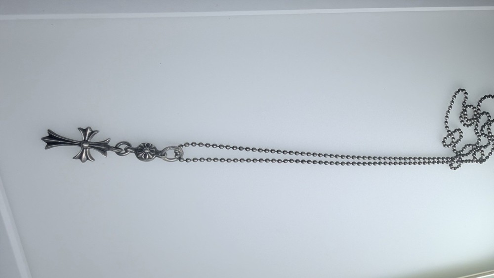 Selling my Chrome Hearts necklace. Haven’t worn it in a while, just been sitting in my jewelry box. What’s included: ∙ Sterling silver cross pendant ∙ Tiny CH cross charm ∙ Ball chain (as shown) Condition: Good used condition. Silver has some natural darkening/patina which is normal for Chrome Hearts pieces. Can be cleaned or left as is for that aged look. This is 100% authentic. The ball chain connects to a Tiny CH cross pendant - nice layered piece. No returns - all sales final to prevent any issues. Please check photos carefully before buying. Feel free to ask questions or request more pics.