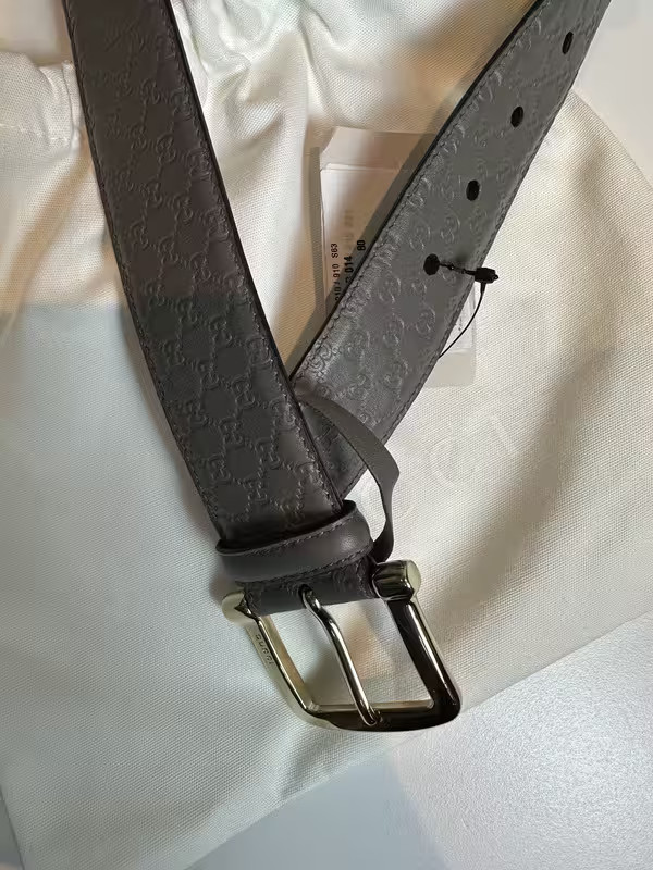 100% Authentic New Gucci "MicroGuccissima" Soft belt Color:Gray Belt Size: 80 length, 1.5Inch width Material:Leather