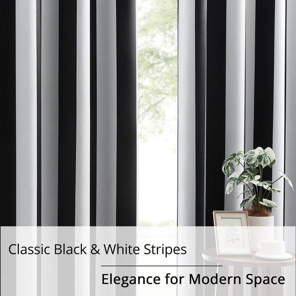 100% Blackout Curtains – Classic Black and White Stripe Curtains, 2 Panels, E...