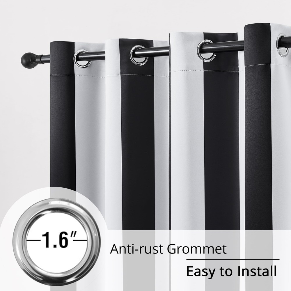 $ 69.7100% Blackout Curtains – Classic Black and White Stripe Curtains, 2 Panels, E...
