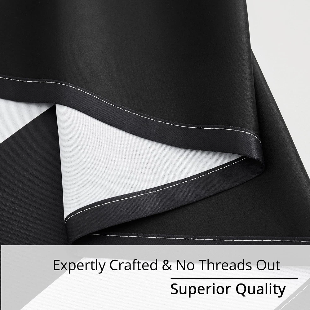 Transform your home with our 100% Blackout Black and White Stripe Curtains, combining timeless style with ultimate functionality. These curtains feature a classic Black and White Stripe pattern, perfect for adding elegance and sophistication to any space while ensuring complete light control and privacy. Stylish Black and White Stripe Pattern: Classic Black and White Stripe design adds sophistication to any room, blending perfectly with modern or traditional decor. 100% Blackout: Completely blocks out sunlight and UV rays, ensuring optimal privacy and restful sleep any time of day. Durable Black Backing: The back of the curtains is solid black, made with yarn-dyed black for exceptional durability and excellent colorfastness under sunlight. Thermal Insulation for Energy Savings: Helps regulate indoor temperatures by keeping the heat out in summer and retaining warmth in winter, improving energy efficiency and reducing utility costs. Noise Reducing & Peaceful: The thick, high-quality fabric reduces outside noise, creating a quiet and serene environment perfect for sleeping, working, or relaxing. Easy Installation & Maintenance: Comes with a grommet top design for effortless hanging on most standard curtain rods. Machine washable fabric ensures easy care and long-lasting use.