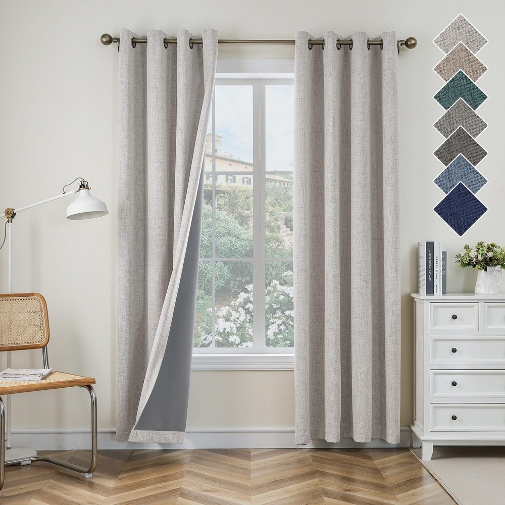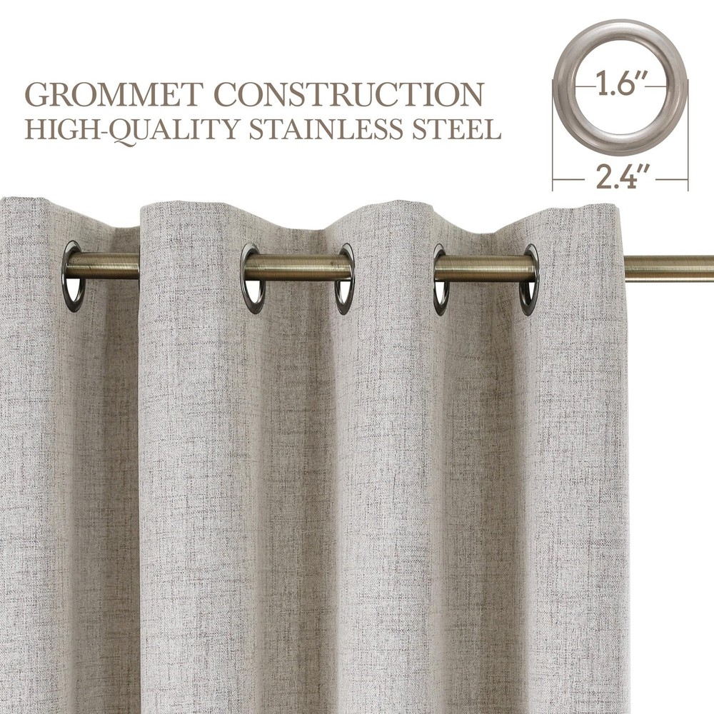 Features: 100% BLACKOUT MATERIAL linen look full blackout curtains are made of faux linen textured fabric with 3 layers.Curtains for living room can 100% block sunlight and ultraviolet rays and prevent furniture from being exposed to the sun.The natural curtains have soft feel, exquisite workmanship, high curl and very durable - not easy to fade under direct sunlight for a long time. INTUITIVE ADVANTAGE: Thick curtains well protect privacy and give you a sufficient sense of security. Curtains for bedroom can block the noise from the outside to a certain extent and bring a good sleep environment to you. As a decorative home accessories, our curtain is very suitable for your bedroom, living room, children's room and nursery. RELATIVE ADVANTAGEDue to three-layer weaving technology,thermal curtains can prevent heat loss in winter and block the entry of light and heat in summer. Achieving indoor temperature balance would help saving air conditioning cost.Install natural lined curtains for living room today to keep your home warm and live in a green way. READY MADEEach package contains 2 panels of grey curtains. Each panel measures 52 x 84 inch (W x H). With 8 silver rings, inner diameter is 1.6 inch. Eyelet curtain is easy to install and slide and can be easily installed into any standard curtain poles. More, this beautiful home decor would make your home elegant and natural. WE'RE HERE TO HELP black out curtains are easy to care,machine washable under 30 degrees, use mild detergen.Iron at low temperatures.Customer satisfaction is our top priority always! Products are returnable and replaceable within 30-days for the premium quality of our blackout curtain. Not satisfied with the curtains & drapes? Send us a message with any questions or concerns.