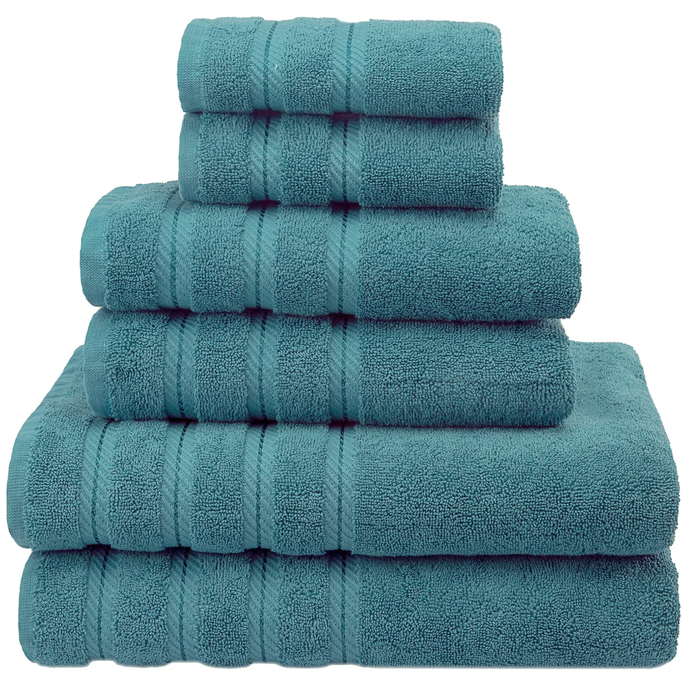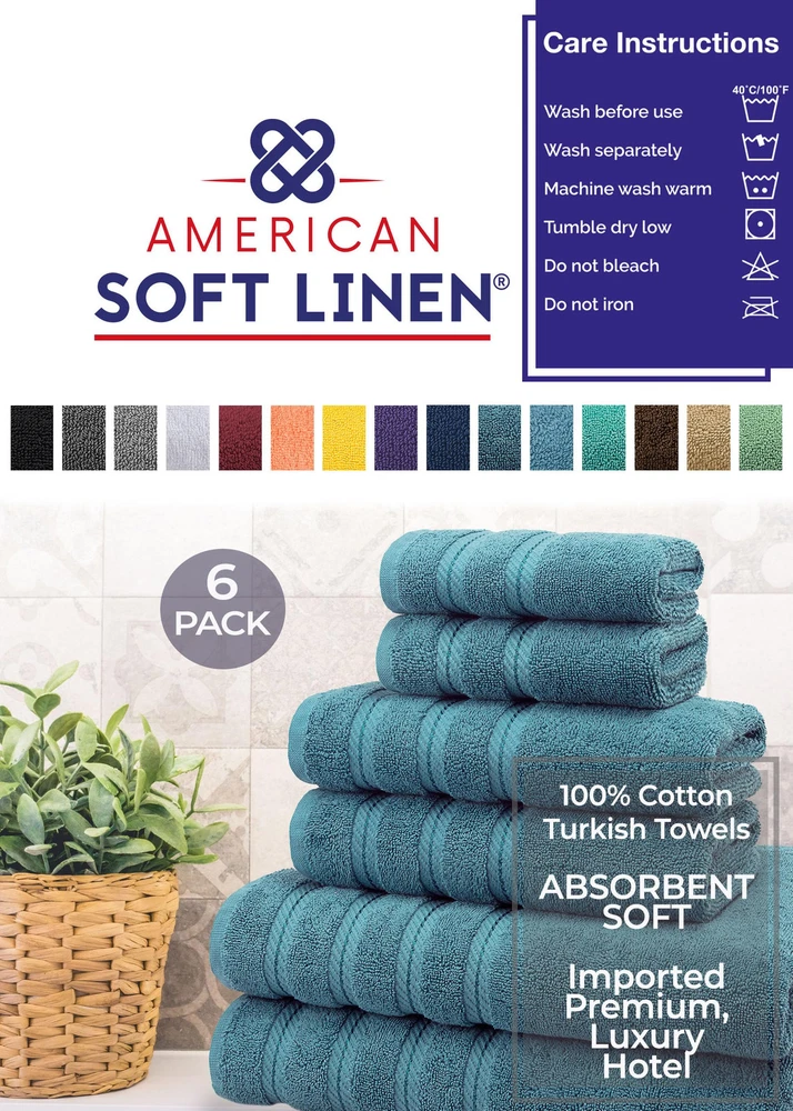 ✅ SOFT to TOUCH : 6 Piece Turkish Towel set is made of 100% Carde Ringspun Cotton, Fluffy Towel Set is extremely Absorbent ✅ HEAVY WEIGHT: This 590 GSM Turkish 6 Piece Towel Set Includes 2 Bath Towels (27 inch x 54 inch), 2 Hand Towels (16 inch x 28 inch) and 2 Washcloths (13 inch x 13 inch) ✅ DURABILITY: Double Stitched Hem Finishing on Long Sides for Maximum Durability ✅ CERTIFICATION : Towels are OEKO-TEX STANDARD 100 Certified and Tested for Harmful Substances. ✅ THIS ITEM IS RETURNABLE AND COMPLIES WITH 'S POLICY.