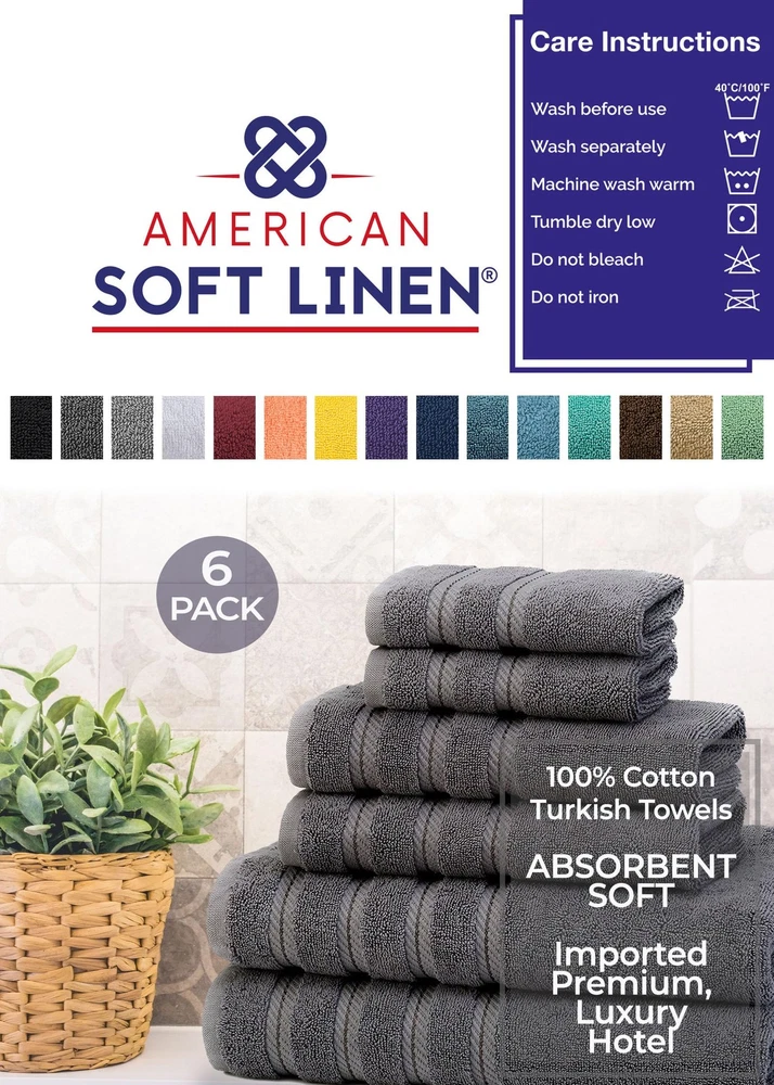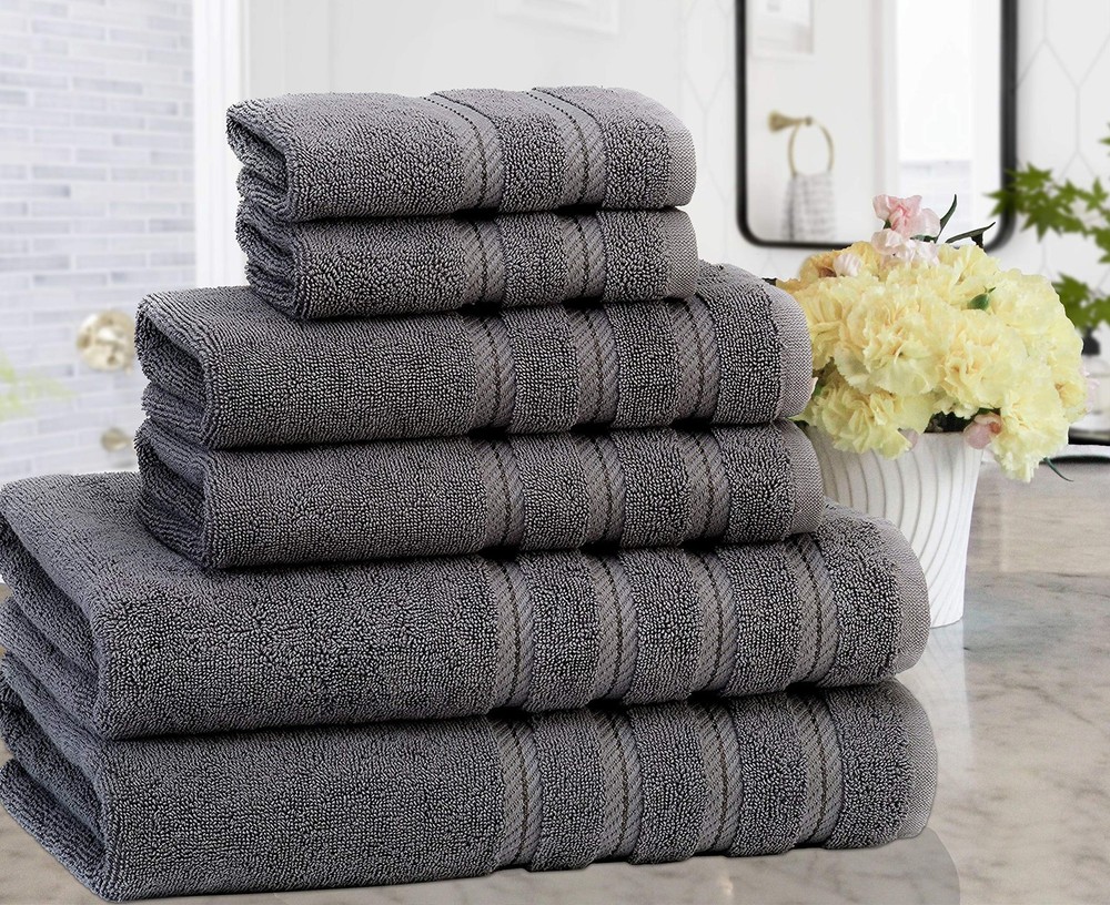 Soft to Touch 100% Turkish Carde Cotton, 560 GSM High Tickness, 6 Piece Towel Set, 2 Bath Towels 2 Hand Towels 2 Washcloths ✅ SOFT to TOUCH : 6 Piece Turkish Towel set is made of 100% Carde Ringspun Cotton, Fluffy Towel Set is extremely Absorbent ✅ HEAVY WEIGHT: This 590 GSM Turkish 6 Piece Towel Set Includes 2 Bath Towels (27 inch x 54 inch), 2 Hand Towels (16 inch x 28 inch) and 2 Washcloths (13 inch x 13 inch) ✅ DURABILITY: Double Stitched Hem Finishing on Long Sides for Maximum Durability ✅ CERTIFICATION : Towels are OEKO-TEX STANDARD 100 Certified and Tested for Harmful Substances. ✅ THIS ITEM IS RETURNABLE AND COMPLIES WITH AMAZON'S REFUND POLICY.