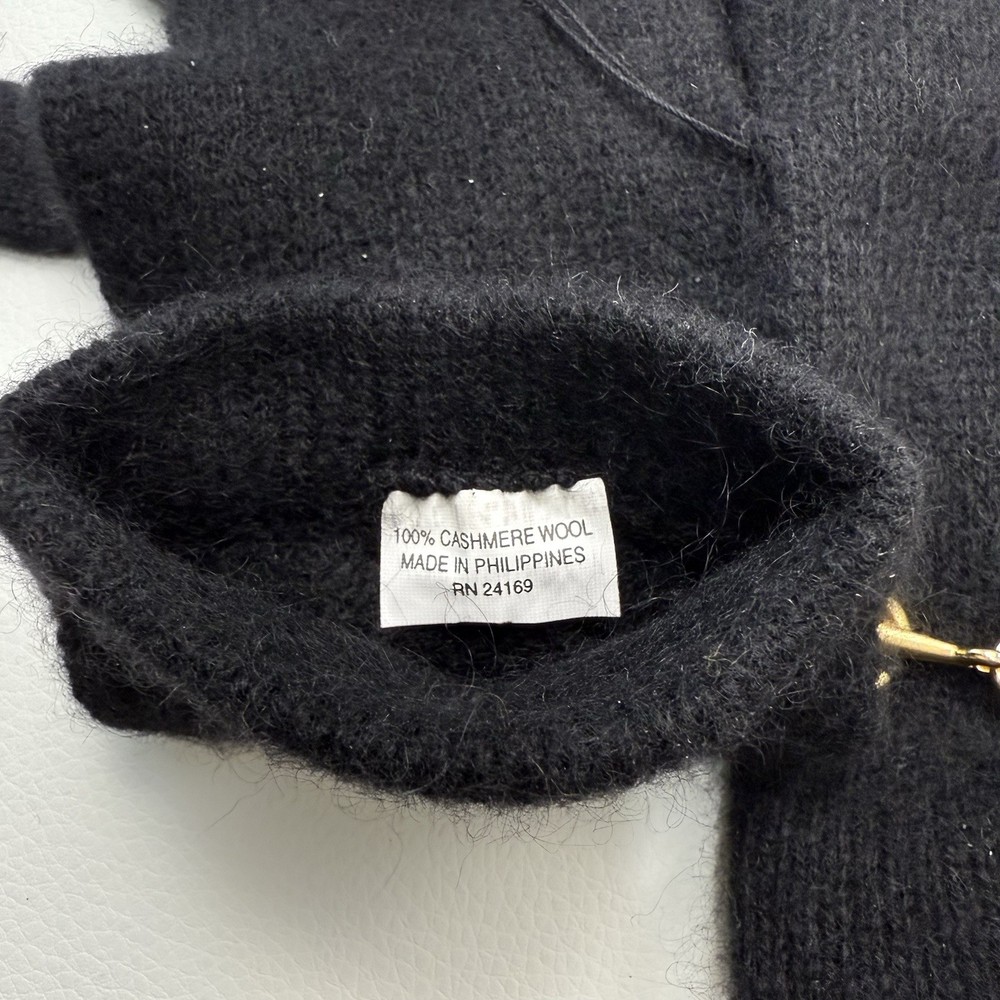 100% Cashmere Gloves Black With Gold Tone Metallic Details Lightweight Elegant Soft, lightweight, unlined Next business day shipping! Thank you for supporting small business!