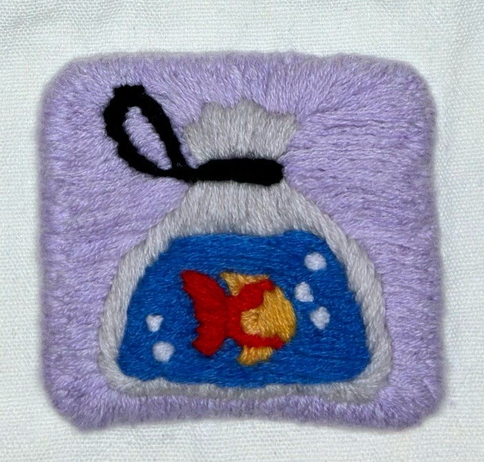 This mini canvas tote features a front panel of hand-dyed, recycled cashmere yarn, stitched using punch needle embroidery for a clean, textured finish. Simple, functional, and thoughtfully hand crafted. Made from sturdy cotton canvas with a soft structure, it’s sized just right for your daily essentials. GOLDFISH - Punch needle embroidery Materials: 100% Cashmere Yarn - Recycled and Hand-dyed Natural Cotton Canvas Dimensions: Height: 8 in Width: 10 in Bottom Width: 7 in Depth: 3 in Handle Length: 8 in