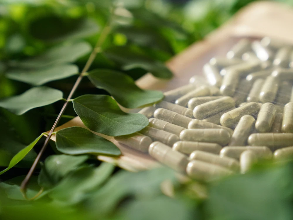150x PREMIUM ORGANIC NATURAL MORINGA CAPSULES – Moringa oleifera muti-vitamin. Introducing our Organic Moringa Oleifera Capsules - a powerhouse of natural goodness conveniently packaged for your well-being! These capsules are packed with Vitamins, Minerals, Proteins, Antioxidants, Fiber, Omega-3 Fatty Acids & Phytonutrients. Moringas nutritional profiles makes it a valuable addition to a balanced diet, offering a wide range of essential nutrients. Our capsules offer a convenient way to incorporate this superfood into your daily routine. Elevate your wellness journey with the ease of our Organic Moringa Oleifera Capsules - a simple yet effective addition to your health-conscious lifestyle. Order now and experience the benefits of natures vitality in every capsule! Recommended: 2-4 Capsules per day. Note: Our Organic Moringa Oleifera Capsules are a natural dietary supplement designed to support overall well-being. Before incorporating any new supplement into your routine, we advise consulting with a healthcare professional.
