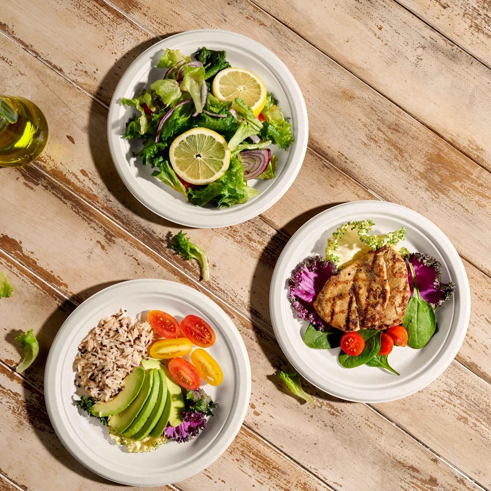 Eco-friendly heavy duty paper plates made to save your time and energy, just toss the disposable paper plates when you’re done, no clean-up necessary. These compostable plates are four times stronger than standard disposable party plates. Premium quality heavy duty disposable plates with no plastic or wax lining. Designed with superior strength, it is cut-resistant and leak-resistant, perfect for serving hot or cold. Safe to use in the microwave. Ideal for restaurants, schools, family events, weddings, receptions, birthday parties, BBQs, picnics, holidays, catered events and all occasions. Paper plates bulk pack of 9 inch paper plates to accommodate all your guests. Made of durable high quality bagasse sugarcane fiber which makes the recycled paper plates 100% compostable and biodegradable, suitable for composting and easy disposal. 100% plant-based recycled bagasse and bamboo, no trees were used to create the paper dinner plates! Just sugar cane leftovers turned into paper-like biodegradable plates. Sturdy and strong thick paper plates able to resist oil, sogginess, bending, and knife cuts. Eco-friendly heavy duty paper plates made to save your time and energy, just toss the disposable paper plates when you’re done, no clean-up necessary. These compostable plates are four times stronger than standard disposable party plates Premium quality heavy duty disposable plates with no plastic or wax lining. Designed with superior strength, it is cut-resistant and leak-resistant, perfect for serving hot or cold. Safe to use in the microwave Ideal for restaurants, schools, family events, weddings, receptions, birthday parties, BBQs, picnics, holidays, catered events and all occasions. Paper plates bulk pack of 9 inch paper plates to accommodate all your guests Made of durable high quality bagasse sugarcane fiber which makes the white dinner plates 100% compostable and biodegradable, recycled paper plates suitable for composting and easy disposal 100% plant-based recycled bagasse and bamboo, no trees were used to create the paper dinner plates! Just sugar cane leftovers turned into paper-like biodegradable plates. Sturdy and strong thick paper plates able to resist oil, sogginess, bending, and knife cuts.