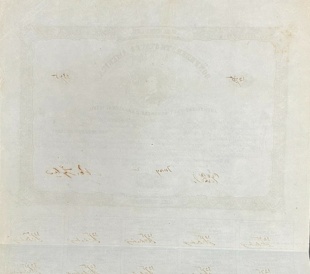 $100 Confederate States Coupon Bond – Criswell 29, Ball 54 Offered for your consideration is a $100 coupon bond issued by the Confederate States of America under the Act of August 19, 1861. It was catalogued by the late Grover Criswell as Cr. 29 and by the late Dr. Douglas Ball as B. 54. The central vignette features a portrait of Robert Mercer Taliaferro Hunter, a pre-war United States representative and senator, as well as a short-term Confederate Secretary of State and long-term Confederate senator, presented in a circular frame and surrounded by an ornate floral design. Immediately above, printed in an arc, is “CONFEDERATE STATES OF AMERICA / LOAN” , with “ AUTHORIZED BY THE ACT OF CONGRESS. C.S.A. OF AUGUST 19, 1861 ”, below the vignette. This is followed by a lengthy financial obligation, printed in a lovely italic scrip, which states (in part) that “ On the first day of July, 1869. The Confederate States of America will pay to the Bearer of this Bond … the sum of ONE HUNDRED DOLLARS with Interest thereon … at the rate of Eight per Cent. per annum … ”. This is followed by a statement that “… This debt is authorized by an Act of Congress, approved August 19, 1861 entitled ‘An Act to authorize the issue of Treasury Notes and to provide a War Tax for their redemption …’” . It further states that, “… the Register of the Treasury, in pursuance of the said Act of Congress, hath hereunto set his hand and affixed the seal of the Treasury at RICHMOND, this 5 day of May 186 2 …” , with the signature of the register, “Ro. Tyler” , appearing at the lower right. At the bottom center is a small vignette depicting a dog beside a locked box (this design element was used frequently to represent the safety and security of your money, since dogs were known for their fidelity). A decorative, rectangular border, with the denomination repeated at the top and bottom and decorative designs at each corner (also with the denomination), encloses all of the foregoing elements, neatly separating them from the remaining 10 interest coupons. Each of these coupons is valued at “FOUR DOLLARS” and hand-signed by “G E Dabney” , one of the many Treasury employees authorized to sign fiscal documents. This bond was printed by “B. DUNCAN COLUMBIA. S.C.” , as evidenced by their imprint at the lower center. In common with most government bonds of this era, the reverse of this piece is blank. Confederate fiscal records indicate that 8,884 bonds of this type were originally issued, though how many have survived the intervening 150+ years is unknown. A great bond to frame with a piece of Confederate currency for display in a den or office. Robert Tyler was the son of John Tyler, the 10 th President of the United States, and served as the register of the Confederate Treasury from August 13, 1861 until the close of the war. He received his position mainly through the influence of his father and not due to any special abilities of his own. It is interesting to note that during his father’s administration, Robert spent a great deal of time in the White House, and his wife served for some time as the official hostess. This piece exhibits light toning across the entire surface, imparting to the document an off-white to beige hue, somewhat darker at the top corners and along the edges (these can be hidden if the bond is matted for framing). Several foxing spots are scattered throughout the design, somewhat more visible on the blank back. The contrast is average for the issue, with the manuscript additions being sharp and fully legible. Due the acidic nature of the period ink and the type of paper used in production, corrosion is present at the signatures and serial numbers, easily detected when the bond is viewed from the back (this is especially true at the signature). In common with virtually all documents of this type, horizontal and vertical folds (as well as some on the diagonal) are present (these folds occurred when the bonds were placed in safes or the cubbyholes of desks), with wrinkles noted at the edges (possibly from being wet in the past). Some minor edge tears are noted, especially at the wrinkled sections. The margins are average for the issue, though slightly irregular, with the bottom being cut to the frame of the coupons (this occurred when the coupons were removed for redemption). This bond, measuring approximately 12½ x 14 inches, is very popular with framers, especially with the floral design and decorative border. An attractive and historic memento of that turbulent period in American history. A charge of $6.95 will be added to the winning bid for postage and insurance. A $5.00 charge will be added to any item picked up in person at our physical location. If you have any questions concerning this item, please ask before purchasing. Buy or Bid with Confidence – American Coins & Collectibles President Richie Self has worked 6 years as a paper money grader/authenticator. He has contributed to numerous reference books within the industry, as well as being a co-author of “The Comprehensive Catalog and History of Confederate Bonds, 2 nd Edition” with Douglas B. Ball, Ph.D., Henry F. Simmons, M.D., Ph.D. and James R. Desabaye. Mr. Self is a life member of the American Numismatic Association, the Society of Paper Money Collectors, as well as numerous regional numismatic associations. He is an authorized submitter to NGC, PCGS, and PMG, a diamond founding member of Coin Dealers Helping Coin Dealers and a supporter of the Industry Council for Tangible Assets. American Coins and Collectibles can be found at many of the state and local coin shows. American Coins and Collectibles Shreveport, LA