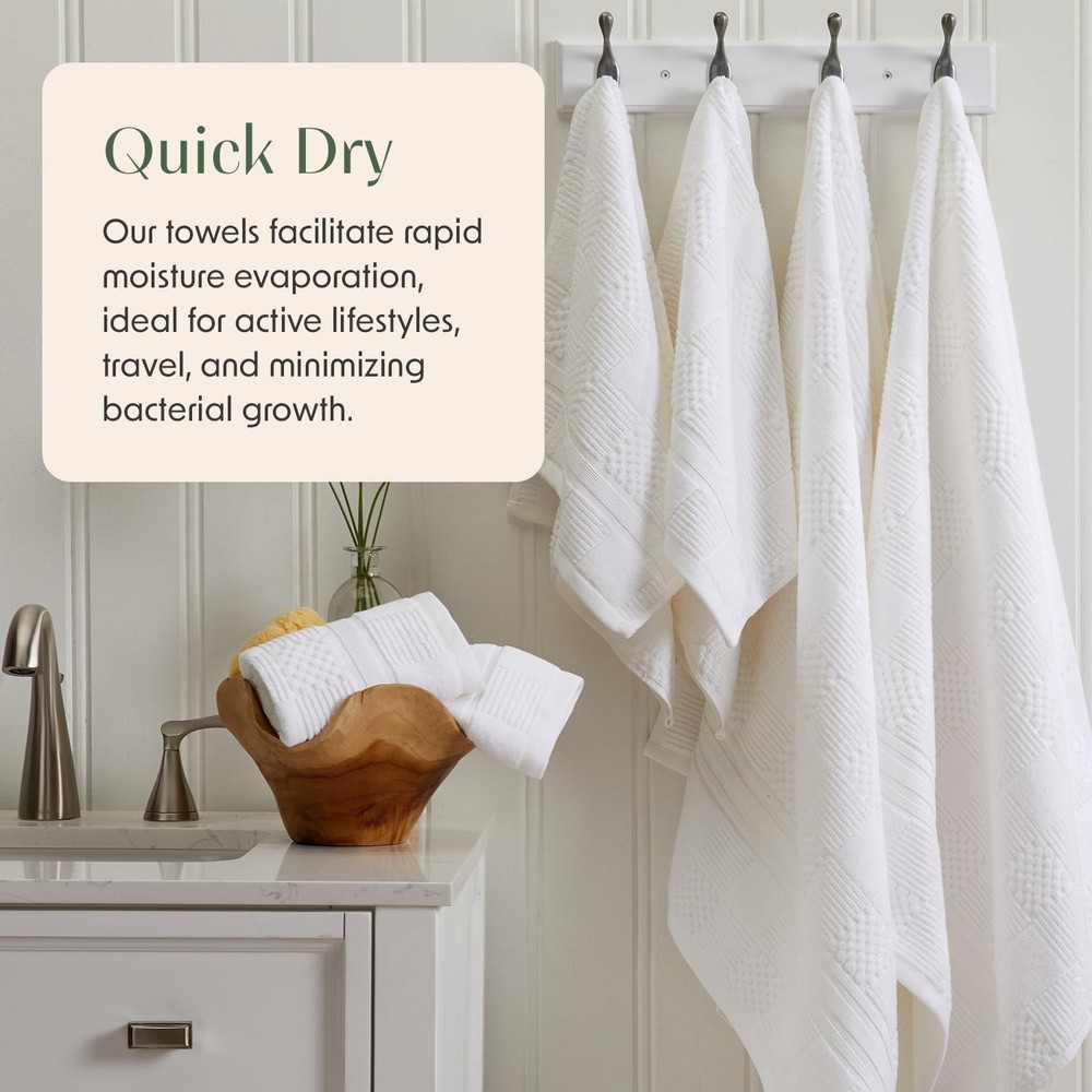 $ 29.248-Piece Zero Twist Cotton Towel Set with Ribbed Geometric Design – Bathroom Essentials
