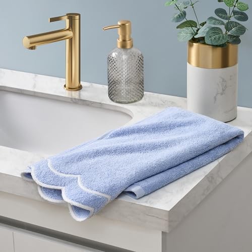 Return Policy Fast Delivery Trusted seller 100% Cotton Hand Towel for Bathroom, Embroidered, Soft & Absorbent, 500 GSM, 1 Piece, 16" x 27", Blue with White Scallop Product Description 100% Cotton SCALLOPED HAND TOWEL Decorative embroidered scalloped hand towel measures 16 inches wide x 27 inches long. Soft, absorbent, and perfectly sized, this bath accessory offers a plush feel with every use. Made of 100% cotton, this scalloped hand towel for bathroom effortlessly enhances your home décor and instantly updates your shower space. SCALLOPED BATHROOM TOWELS Simple and elegant on trend scallop home décor design elevates your bathroom space. Towel hem is embroidered with sage green, blue, white, blush pink or red scallop to complement any decor. DURABLE Crafted of 500 GSM fabric, the super soft 100% cotton hand towel is highly absorbent and is ideal for everyday use in master baths, powder rooms, guest bathrooms, teen bathrooms, college dorms. CLASSIC SCALLOP HEM White or blue towels are the perfect accessory for any bathroom. This sweet scallop bathroom hand towel combines fashion and functionality for a soft feel with every use. Versatile cottagecore scallop towels are an easy way to add whimsical charm to your home. MACHINE WASHABLE Includes one hand towel. Machine wash for easy care. Shipping Returns Payment Shipping Shipping is FREE to all addresses other than APO/PO boxes in the lower 48 states. All our stock ships from US-based warehouses. Shipped via USPS or UPS (depending on location and package weight) Unless stated otherwise, all orders will ship within 24-72 hours of your payment being processed. Check our feedback to see the great reviews of FAST shipping we offer. Returns Seller does not accept returns Payment We currently accept payment via eBay managed payments only. Once payment is cleared, we will dispatch your shipment within 1-3 business days. Please refer to the "Shipping" tab for more information regarding shipping speed to your destination.