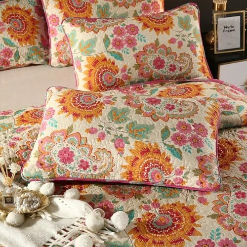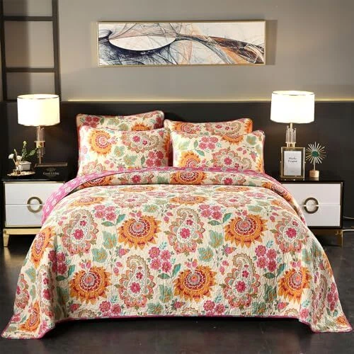 Return Policy Fast Delivery Trusted seller 100% Cotton Boho Quilt Set Full Queen Size Gorgeous Paisley Floral Patterned Quilt Bedspread 98"x90" Bohemian Vibrant Exotic Ethnic Mandala Coverlet Bedding Set 3 Pieces for All Seasons Product Description ❤️ 100% Cotton Quilt Set Full/Queen: This Boho Quilted Bedspread is made of Natural 100% selected cotton cover, 80% cotton and 20% polyester blend filling, which are ultra soft breathable feeling, warmth, comfortable, smooth, safe and skin-friendly. Cotton material features better moisture absorption and breathability to keep a dry and fresh sleeping environment. The pre-washed craftsmanship makes the cotton fabric get softer after every wash and stay cozy for years. ❤️ Colorful Boho Reversible Quilt Set: This classic bohemian quilted bedspread full / queen set in a unique beautiful rose red orange fuchsia beige mixed color design with gorgeous paisley and plant and mandala floral patterns makes your room vibrant bright and cozy. Infuses modernity into your space while maintaining classic bohemian charm. ❤️ Versatile and Practical:The neat and tight stitches of the quilted bed cover keep your filling uniform, even after washing to ensure long-term use. Three-layer design and the 220gsm cotton filler inside make this vibrant quilt set lightweight but warm, suitable for spring, summer, autumn/fall, and winter, and can be used as a quilt set, coverlet set, bedspread, sofa cover, and comforter set. It can be used alone or with a blanket or comforter. ❤️ Package & Perfect Gift Ideas: 1 PCS Boho Full/Queen Quilt Bedspread 90" x 98", 2 PCS Pillow Shams 20" x 26". Note: Because of random clipping, the pillowcase may not be completely as same as the picture. Luxury quilt sets fit for bedroom, guest room and dormitory. Also good for use in traveling and camping. Great on the sofa and couch. Perfect gift to families and friends birthday gifts, house-warming, etc as well. ❤️ Easy Care: Machine wash cold on gentle cycle with like colors. Tumble dry low. Do not bleach. No pilling, no shrink, no fade, labor tests show that the boho cotton quilt set keep its shape and stay brands new after frequent wash cycles. Shipping Returns Payment Shipping Shipping is FREE to all addresses other than APO/PO boxes in the lower 48 states. All our stock ships from US-based warehouses. Shipped via USPS or UPS (depending on location and package weight) Unless stated otherwise, all orders will ship within 24-72 hours of your payment being processed. Check our feedback to see the great reviews of FAST shipping we offer. Returns Seller does not accept returns Payment We currently accept payment via eBay managed payments only. Once payment is cleared, we will dispatch your shipment within 1-3 business days. Please refer to the "Shipping" tab for more information regarding shipping speed to your destination.