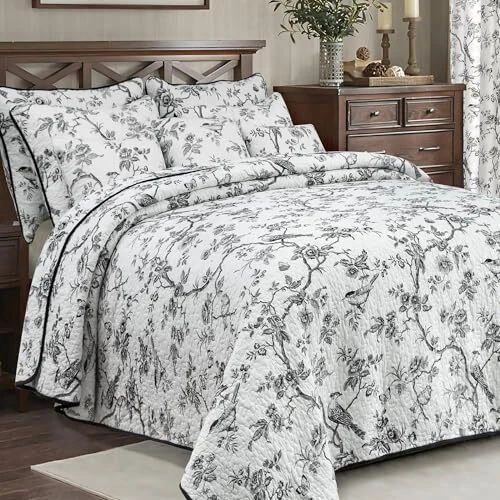 Return Policy Fast Delivery Trusted seller 100% Cotton Quilt King Size Black Bird Bedding Set Double Printing Lightweight Quilt Reversible Coverlet Bedspread with Pillow Shams All Seasons 3 Pieces (106"x96") Product Description Lightweight 100% cotton shell and polyester filler quilt set with fade resistance to dress up your bed in any season Reversible black piped edges quilting with special black bird and branch printed patterns introduce simple indoor refreshing style Designed for easy care, machine washable and tumble dry on low Use as a quilt, bedspread, coverlet or bed cover layered over a duvet in winter or alone in summer Package includes 1 King quilt 96in x 106in and 2 pillow shams 20in x 26in, pillow inserts not included Shipping Returns Payment Shipping Shipping is FREE to all addresses other than APO/PO boxes in the lower 48 states. All our stock ships from US-based warehouses. Shipped via USPS or UPS (depending on location and package weight) Unless stated otherwise, all orders will ship within 24-72 hours of your payment being processed. Check our feedback to see the great reviews of FAST shipping we offer. Returns Seller does not accept returns Payment We currently accept payment via eBay managed payments only. Once payment is cleared, we will dispatch your shipment within 1-3 business days. Please refer to the "Shipping" tab for more information regarding shipping speed to your destination.