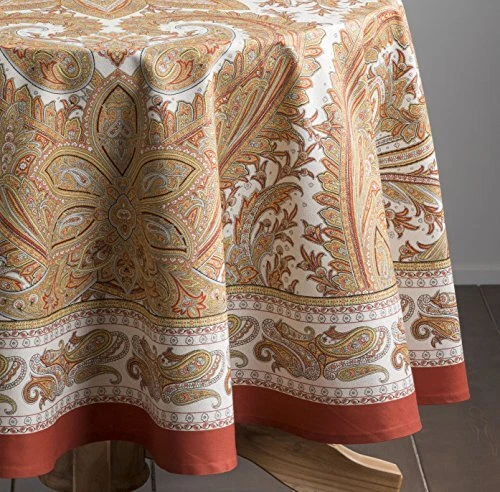 30 Days Return Policy Fast Delivery Trusted seller 100% Cotton Table Cover - 69" Diameter Round Decorative Tablecloth - Tablecloths for Dining, Home, Farmhouse & Party - for Thanksgiving & Christmas - Kashmir Paisley Collection Product Description PACKAGE INCLUDES: This listing features an elegant round tablecloth made from 100% cotton. This luxurious decorative table cloth enhances any dining room or kitchen with a touch of sophistication, perfect for adding charm and elegance to both everyday meals and special occasions. SUITABLE FOR ANY OCCASION: Our versatile round tablecloth effortlessly complements various settings—whether for daily dining, festive gatherings, or special events. This fabric tablecloth fits seamlessly in kitchens, dining rooms, or any area needing a stylish table cover. UNIQUE DESIGN: Each round tablecloth showcases a stunning watercolor print and traditional European motifs. The vibrant colors and intricate details of this dining table cloth bring a classic elegance to your dining experience, making it a perfect coffee table cover as well. EASY CARE & MAINTENANCE: Enjoy the convenience of a washable round tablecloth designed for long-lasting use. Simply machine wash with like colors, avoid bleach, tumble dry on low, and iron if needed. This fabric tablecloth maintains its pristine look with minimal effort. EXPLORE MORE: Discover our selection of coordinating round table linens, including aprons, napkins, and oven mitts, all in matching designs. Visit our store for additional round tablecloths and other stylish fabric tablecloths from to enhance your home decor. Shipping Returns Payment Shipping Shipping is FREE to all addresses other than APO/PO boxes in the lower 48 states. All our stock ships from US-based warehouses. Shipped via USPS or UPS (depending on location and package weight) Unless stated otherwise, all orders will ship within 24-72 hours of your payment being processed. Check our feedback to see the great reviews of FAST shipping we offer. Returns As our valued customer, we will do our best to make sure the product you receive arrives to you on time and as expected. If you are not satisfied with your purchase, please contact us within 30 days of receiving your order to process a return. Payment We currently accept payment via eBay managed payments only. Once payment is cleared, we will dispatch your shipment within 1-3 business days. Please refer to the "Shipping" tab for more information regarding shipping speed to your destination.