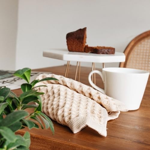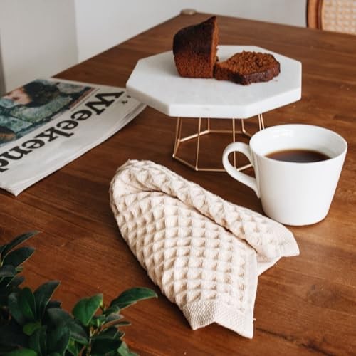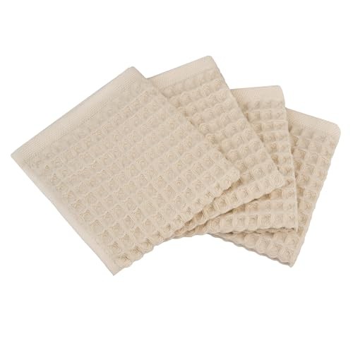 100% Cotton Waffle Kitchen Towel Set of 4 – Absorbent, Quick 13x13 Inches Beige