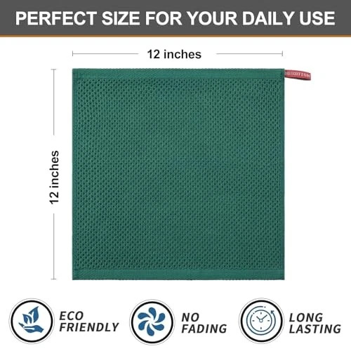 Return Policy Fast Delivery Trusted seller 100% Cotton Kitchen Dish Cloths, 6 Pack Waffle Weave Ultra Soft Absorbent Dish Towels for Drying Dishes Quick Drying Kitchen Towels Dish Rags, 12 X 12 Inches, Dark Green Product Description ✔ 100% COTTON: Our dish cloths are made with 100% cotton, which is more absorbent, softer, durability and greener. You can use it with confidence and never worry about towel fading, ideal for dish cloths or kitchen towels ✔ ULTRA ABSORBENT: We have newly upgraded the hollow honeycomb weave to make this dishcloth light, super absorbent and dry quickly. tea towels are suitable for cleaning and wiping in the kitchen ✔ VALUE PACK: Measures 12 in x 12 in. 6-pack ensures you have plenty of towels at hand for cooking and cleaning needs in restaurants, kitchens, dinner tables, or just about anyw in home w spills are common ✔ MULTI-PURPOSE USE: These kitchen washcloths are widely used and durability for any kitchen cleaning needs. Suitable for washing dishes, wiping countertops, drying hands and so on ✔ EASY TO CLEAN: Hanging hook design for easy to placement and dries. Machine wash and dry for easy care. Always keep dry after use. Hand or machines wash in warm water separately from other items. Do not use fabric softener and bleach Shipping Returns Payment Shipping Shipping is FREE to all addresses other than APO/PO boxes in the lower 48 states. All our stock ships from US-based warehouses. Shipped via USPS or UPS (depending on location and package weight) Unless stated otherwise, all orders will ship within 24-72 hours of your payment being processed. Check our feedback to see the great reviews of FAST shipping we offer. Returns Seller does not accept returns Payment We currently accept payment via eBay managed payments only. Once payment is cleared, we will dispatch your shipment within 1-3 business days. Please refer to the "Shipping" tab for more information regarding shipping speed to your destination.