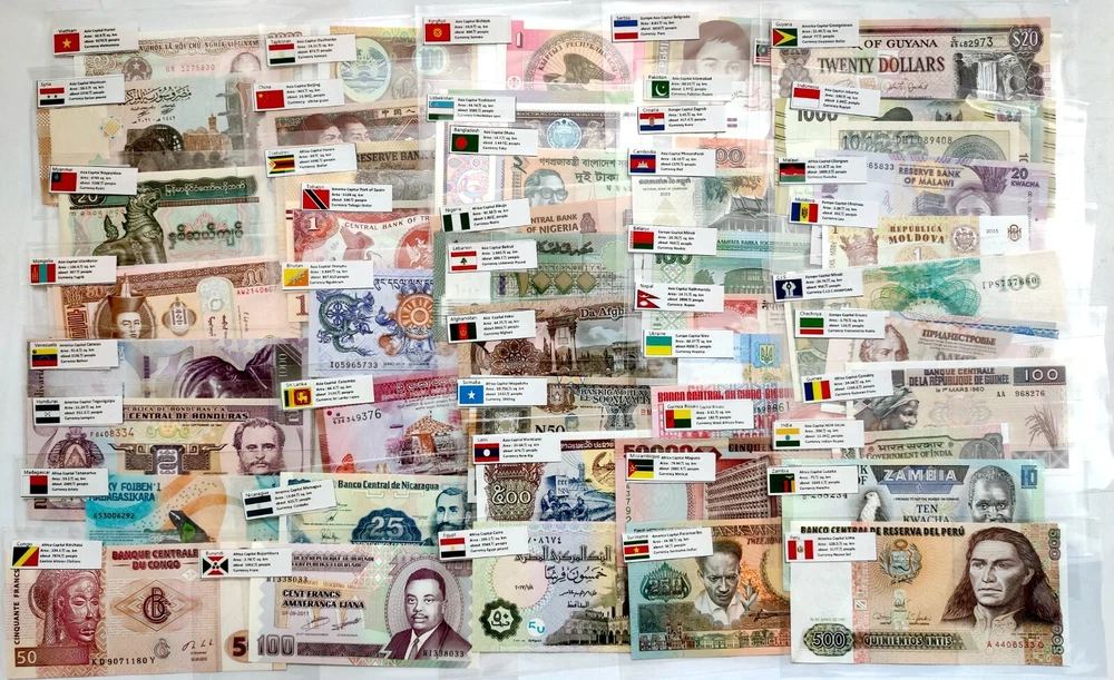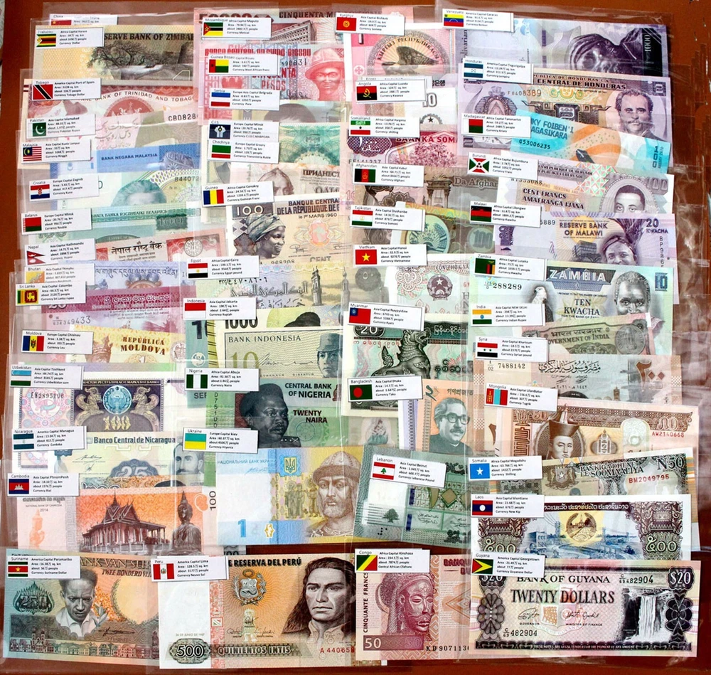 100 Different Foreig Banknotes Paper Money 50 Countries English Flags Collection