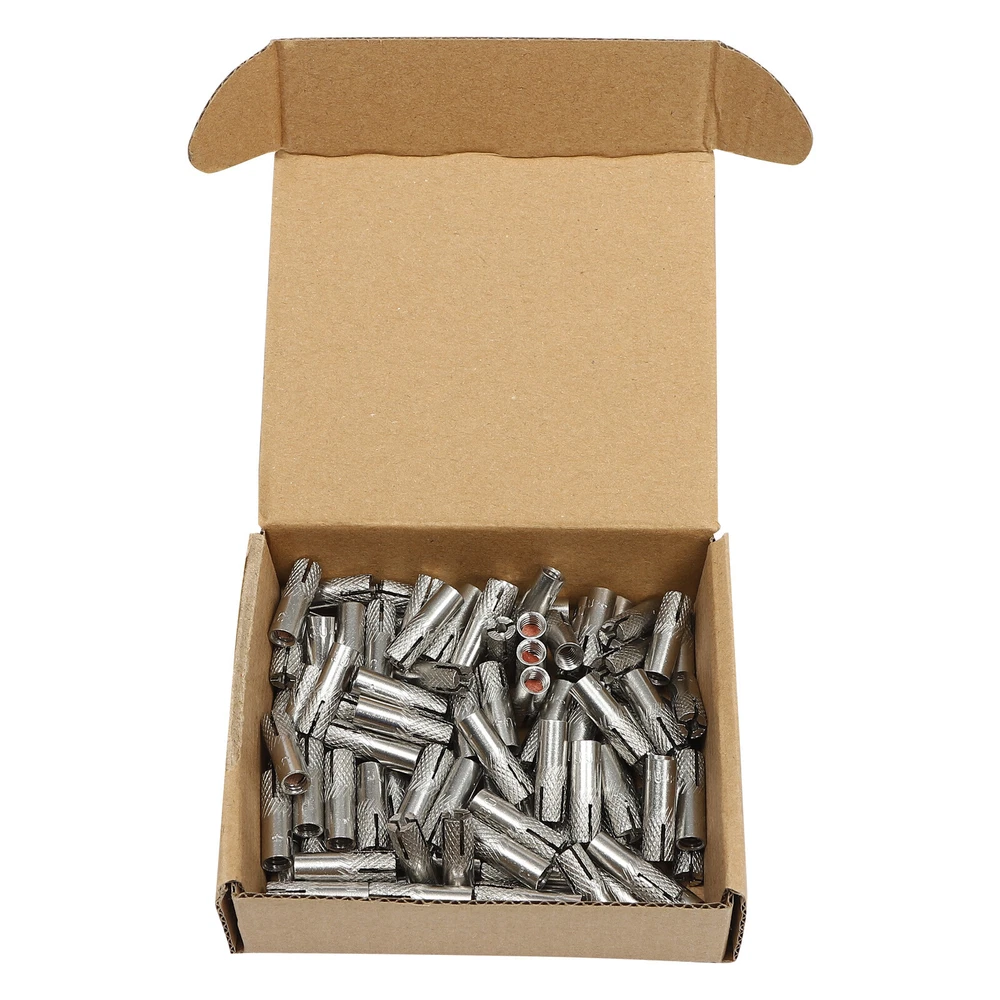 (100) Drop-In 1/4-20'' Concrete Expansion Anchor Drill Stainless Steel 1/4-20 Description If you are a construction worker, or work in the mechanical, construction, transportation, and other industries, and need to control the expansion rate and expansion range of concrete, then our expansion anchor will be one of your essential choices. Because of its excellent material, portable and lightweight structure, and excellent performance, it can become your good assistant in the work. Key Features Sturdy and Durable: It is made of high-quality 304 stainless steel that is very sturdy, wear-resistant, rust-proof, and impact-resistant, which can effectively protect the internal parts and prolong the service life. Drop-in Design: Our anchors feature a drop-in design that allows for precise control of expansion rate and expansion range to suit different concrete elements and engineering requirements. Good Performance: This product features a heavy-duty anchoring system and internal thread, typically used in conjunction with machine screws, bolts, and screws to secure the fixing device to concrete and other masonry materials. Due to its design, it is also commonly used for temporary structures. It can effectively reduce the shrinkage stress and deformation of concrete while reducing energy consumption and improving engineering efficiency. Safe and Reliable: It does not loosen easily and its reliable expansion control mechanism has undergone rigorous safety testing to ensure safe use. Cost Saving: Since expansion anchors are made of precast concrete elements, while the anchor itself is always in the concrete, the bolts you use to hold it in place can be removed and reused. Thus, it helps you save money. Compact and Lightweight: Due to its small and lightweight (1.76 lbs)structure, it can be very easy to carry in your bag or box. Enough Quantity: One hundred expansion anchors inside one package can meet your large-scale work needs at once and save you cost . Customer Service: We aim to provide quality products and services. If you have any problems, please feel free to contact us. We will reply and solve the problem for you as soon as possible. Details Diamond Pattern: This design makes it look not only more beautiful but also helps to increase friction and play a non-slip role and help to grip and hold the insert in the concrete well . Smooth Surface: The surface of the product is simply brightened and deburred to make it more comfortable to touch and look more lustrous. How to Use 1. You need to drill a hole of the right size. 2. Then insert the anchor into the drilled hole. 3. Then you need to insert the installation tool (not included) into the anchor bolt. 4. The anchor is then tapped with a hammer to expand the anchor so that it can be embedded in the concrete. Application It is suitable for new energy, light industry, petrochemical industry, communication industry, marine industry, machining, medical machinery, construction industry, automotive manufacturing and bridge construction, and suitable for holes with a diameter of 0.307-0.315inch. Specifications Material: 304 Stainless Steel Surface Treatment: Brighten and Deburred Mounting Type: Drop-in Number of Pieces: 100 Thread Size: 1/4-20'' Product Outer Circle Diameter: 8mm/0.315in Perforation Diameter: 7.8-8mm/0.307-0.315in Package Size: 11*10*3.5cm/4.3*3.9*1.3inch Gross Weight: 0.8kg/1.76lb Package Included 100* Expansion Anchors Notes These anchors should only be used in masonry and solid concrete, please do not use them for block or brick-based materials. They are typically used with mechanical screws, bolts, and threaded rods(none included). Please allow the slight color difference caused by the shooting light and 1- 3cm error due to manual measurement, and make sure you do not mind before you order.