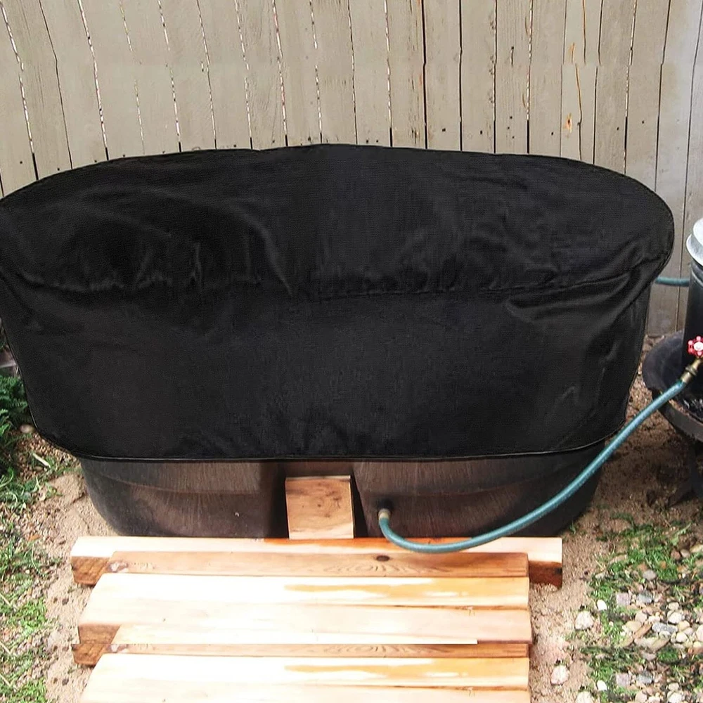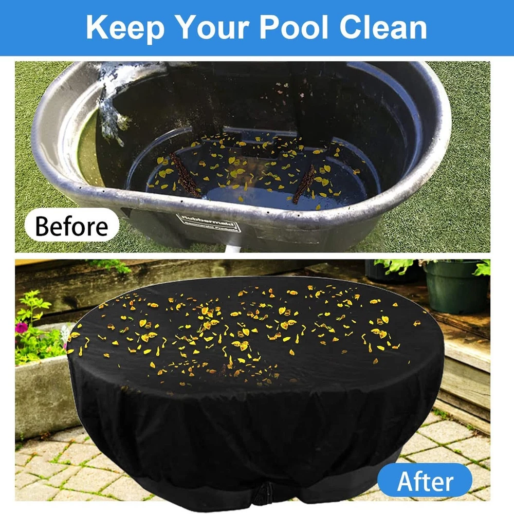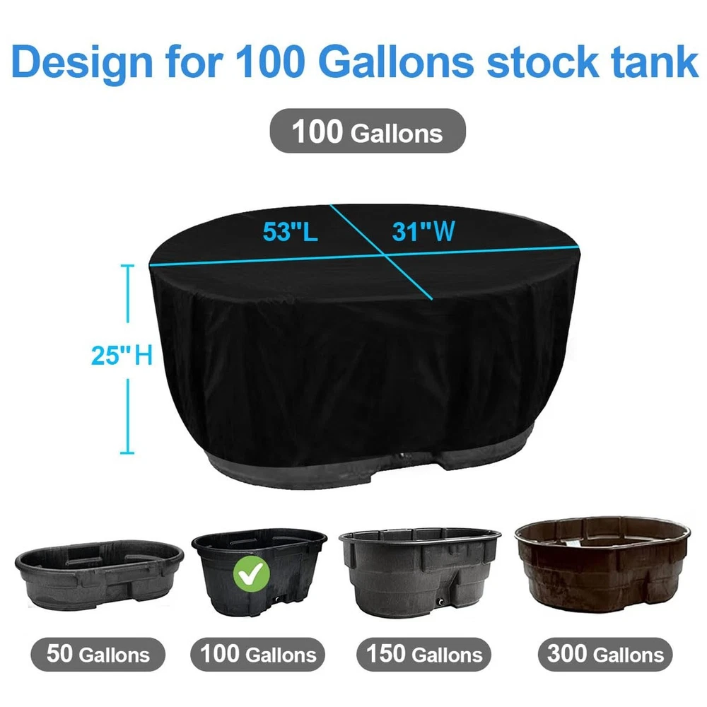 100 Gallon Rubermaid Tub Cover Water Trough Cover Stock Tank Cover for Farm Water Tank Cover Ice Water Therapy Ice Bath Cover Cold Water Cover Rubermaid 100 Gallon Oval Stock pond Cover Waterproof Product Details Material: Polyester Color: Black Brand: Gecic Item Weight: 0.43 Kilograms Water Resistance Level: Waterproof Closure Type: Drawstring Strap Type: Drawstring UPC: 704090403290 Part Number: 100 Gallon Stock Tank Item Weight: 15.2 ounces Product Dimensions: 55 x 35 x 7 inches Item model number: 100 Gallon Stock Tank Style: Custom Pattern: Solid Shape: Round Item Package Quantity: 1 Special Features: Inground Batteries Included?: No Batteries Required?: No Date First Available: April 14, 2023 Better SecureThe Stock Tank Pool Tub Cover is made of 420D heavy-duty waterproof Oxford fabric with precision double stitching, which can effectively prevent tearing, and the anti-ultraviolet coating makes the sit-up cover not fade for a long time, better protect the weight table from sunlight, wind, rain, dust and Bird droppings damage. FeaturesThe bottom has a retractable snap-lock drawstring to keep it from being blown away in the strong winds we encountered. This Stock Tank Cover does a great job of keeping dust/debris/leaves and bugs out. Easy to CleanThe Stock Tank Cover just needs to be rinsed with water and dried for next use,or you can just wipe it with a towel. You can use the cover for a long time. Makes our lives so much easier. Foldable to CarryCan be easily folded into the bag, convenient for you to carry, easy to install and remove. You can apply the stock tank cover indoor or outdoor. Universal CompatibilityOur premium weather protective cover has universal compatibility for Kids Water Table or Swimming Pools, BBQ Grill and Fireplace Fire Pit Table, pet pools Outdoor Toys and other outdoor furniture. Warranty and ServiceFit perfectly 100 gallon stock tank pool, is able to put it on by yourself.If you are not satisfied with our Stock Tank Cover, please contact us in time, we will handle it for you within 24h.