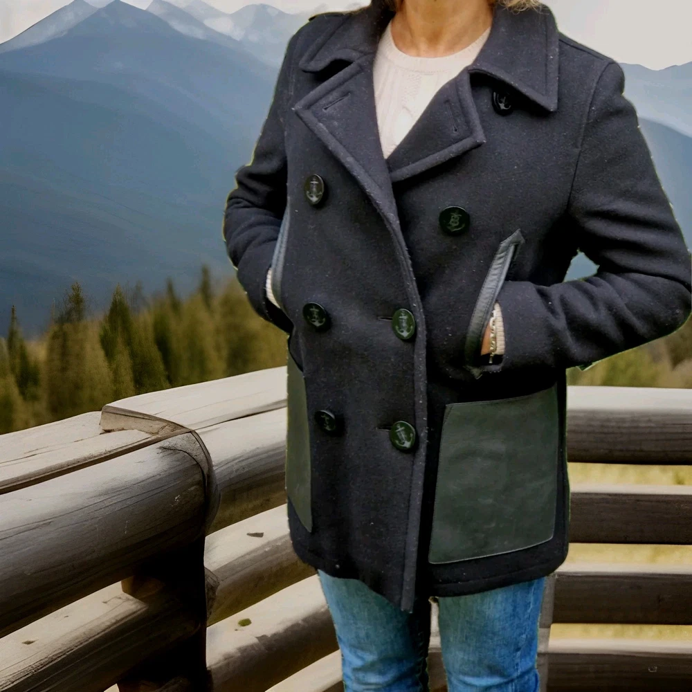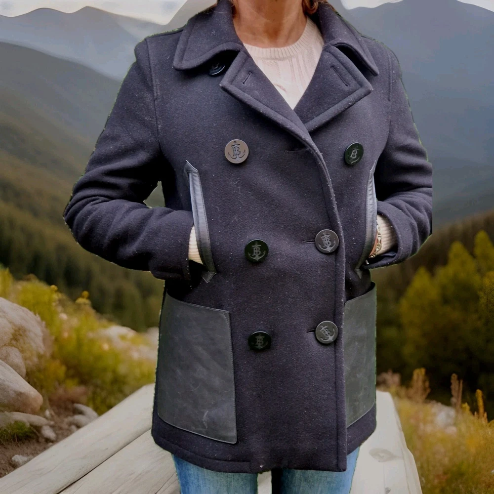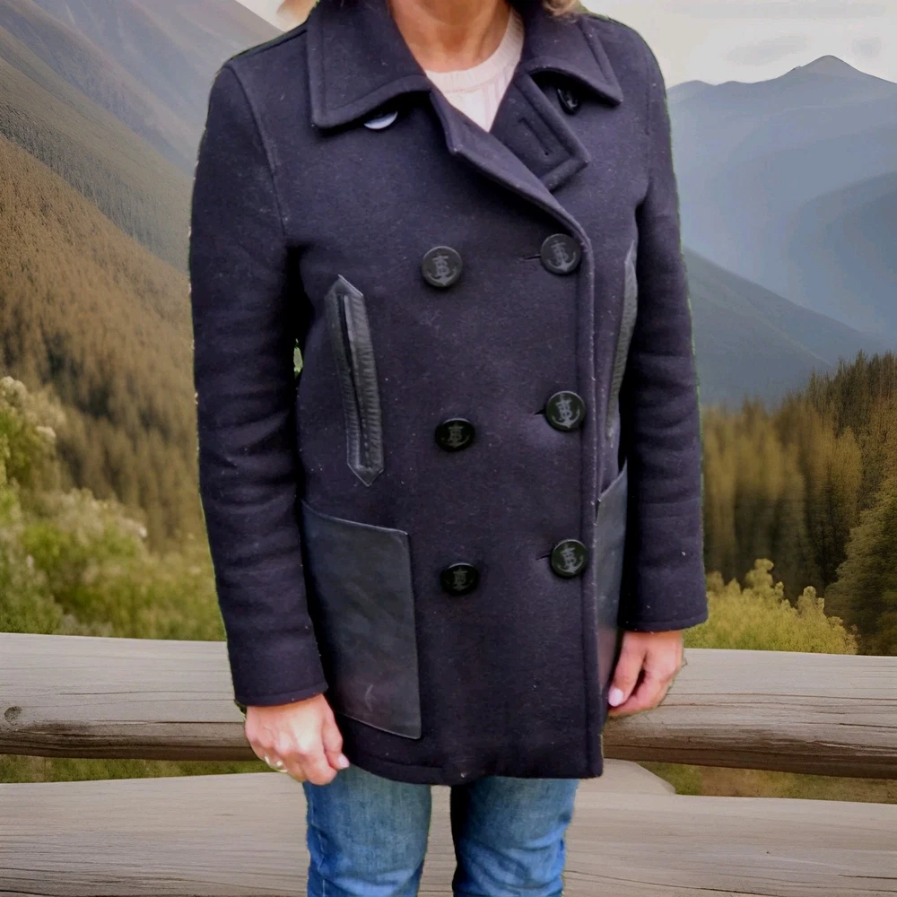 Die Burberry Cabanjacke in Größe 36 ist ein exquisites Stück für die Wintergarderobe einer Dame. Gefertigt aus hochwertiger Wolle und Einsätzen aus echtem Leder, bietet dieser Mantel nicht nur hervorragende Qualität, sondern auch ein zeitloses Design. In einem eleganten Schwarz gehalten, verleiht der Wintermantel jedem Outfit einen Hauch von Coolness und Eleganz. Ein Must-Have für alle modebewussten Frauen, die auf der Suche nach einem stilvollen Wintermantel sind. Burberry-Futter und elegante Knöpfe mit der neuen Burberry Gravur. Der Mantel ist in einem gepflegten Zustand. Er wird mit einem Bügel und Staubbeutel verkauft. Neupreis lag bei 880€.