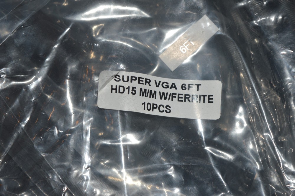 LOT OF 100 High Quality Heavy Duty 6ft VGA/SVGA Cable Male Ferrite Shielded
