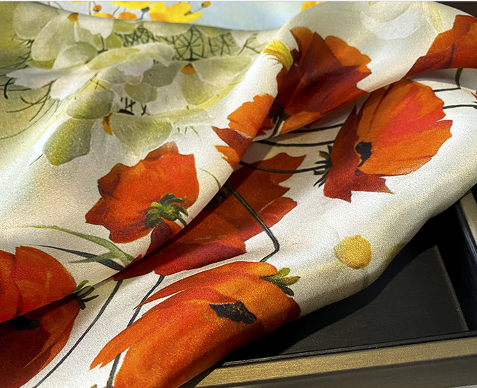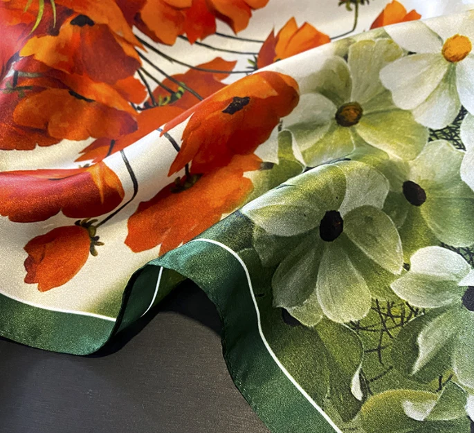 100% Mulberry Silk Scarf 150x15cm Double-Sided Printed for Women