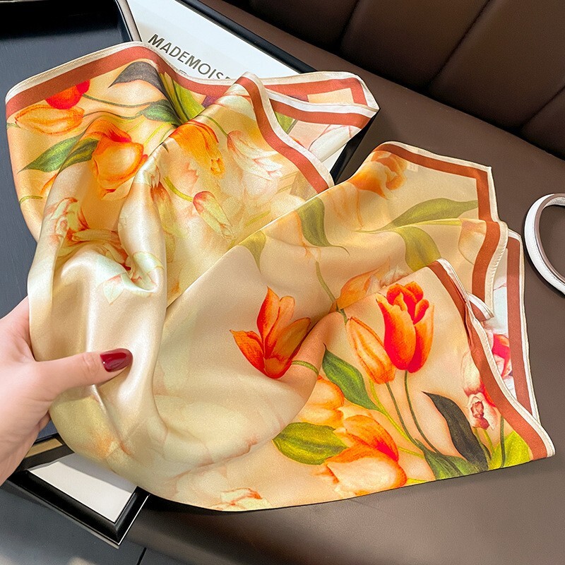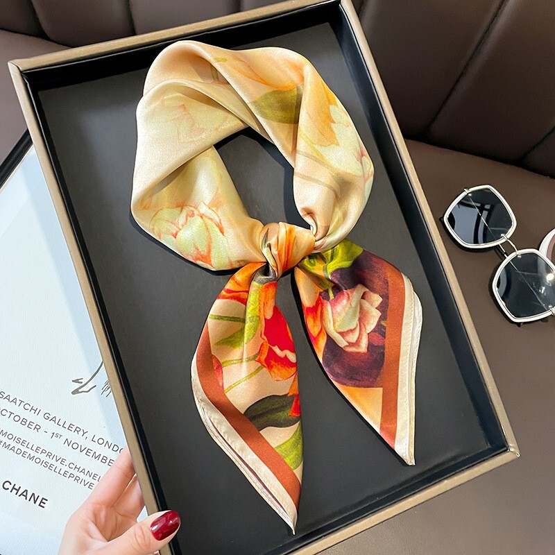 Theme: Art, Flower Color: Beige Type: Scarf Pattern: Floral Fabric Type: Satin Personalize: No UPC: Does Not Apply gtin13: Does Not Apply Material: Silk Features: Multifunctional, Neck Warmer Country/Region of Manufacture: China Vintage: Yes Item Length: 68cm Handmade: No Style: Square Scarf Character: 100% Mulberry Silk Item Width: 68cm Department: Women Season: Fall, Spring, Summer, Winter Brand: Unbranded Accents: Printed