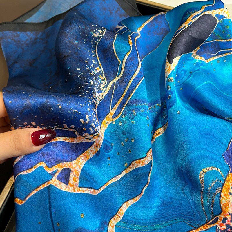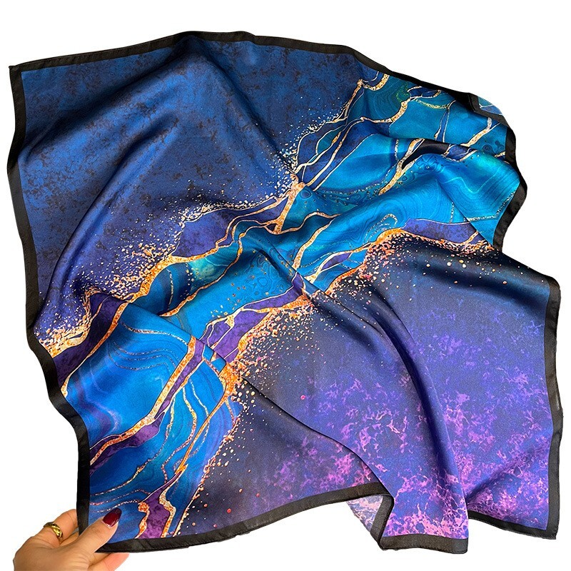 Personalize: No Brand: Unbranded Features: Multifunctional, Neck Warmer UPC: Does Not Apply Color: Blue Accents: Printed Season: Fall, Spring, Summer, Winter Pattern: Scrawl Handmade: No Item Length: 68cm Country/Region of Manufacture: China Character: 100% Mulberry Silk Material: Silk Department: Women Theme: Art gtin13: Does Not Apply Vintage: No Item Width: 68cm Fabric Type: Satin Style: Square Scarf Type: Scarf