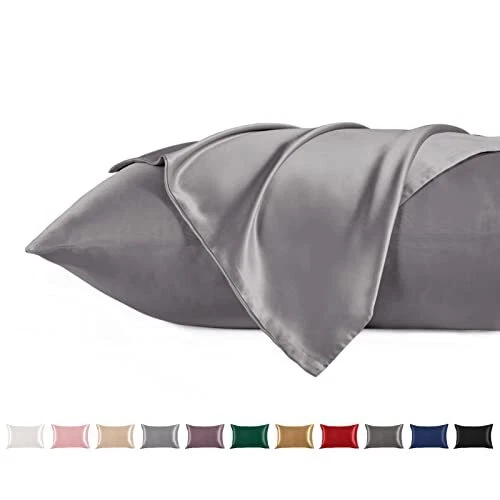 100% Mulberry Silk Pillowcase for Hair and Skin, 22 Momme Queen(20"x30") Grey