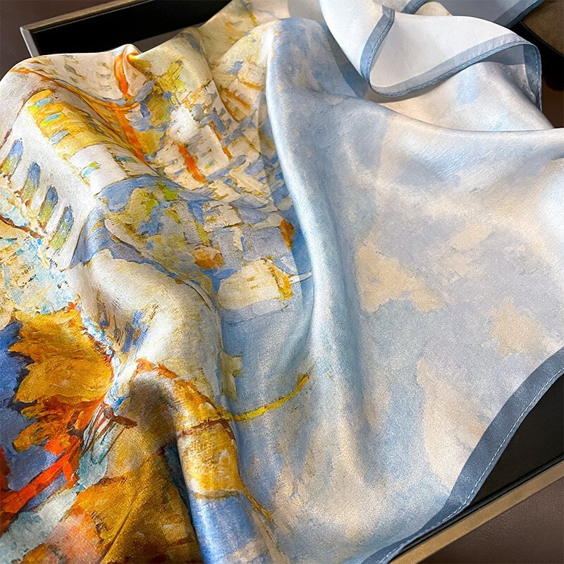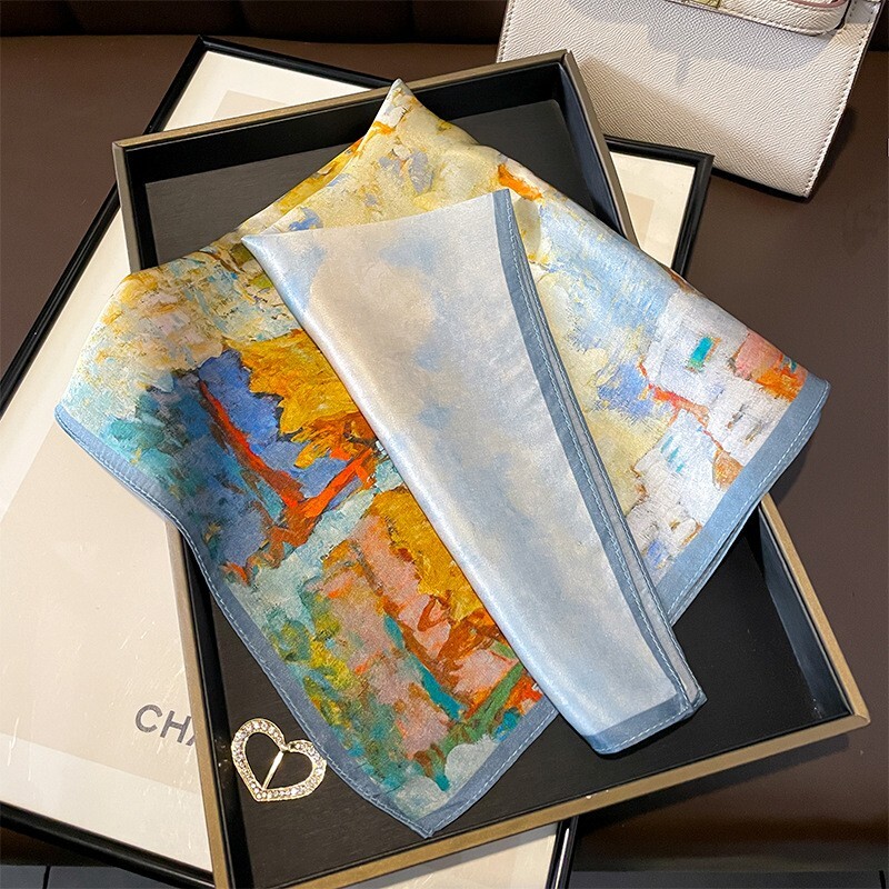 $ 5.57Double-Sided 100% Mulberry Silk Scarf Blue Geometric Headscarf 150x15cm Women