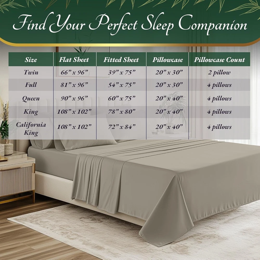 4-Piece Full Bamboo Viscose Bed Sheet Set with 2 Pillowcases