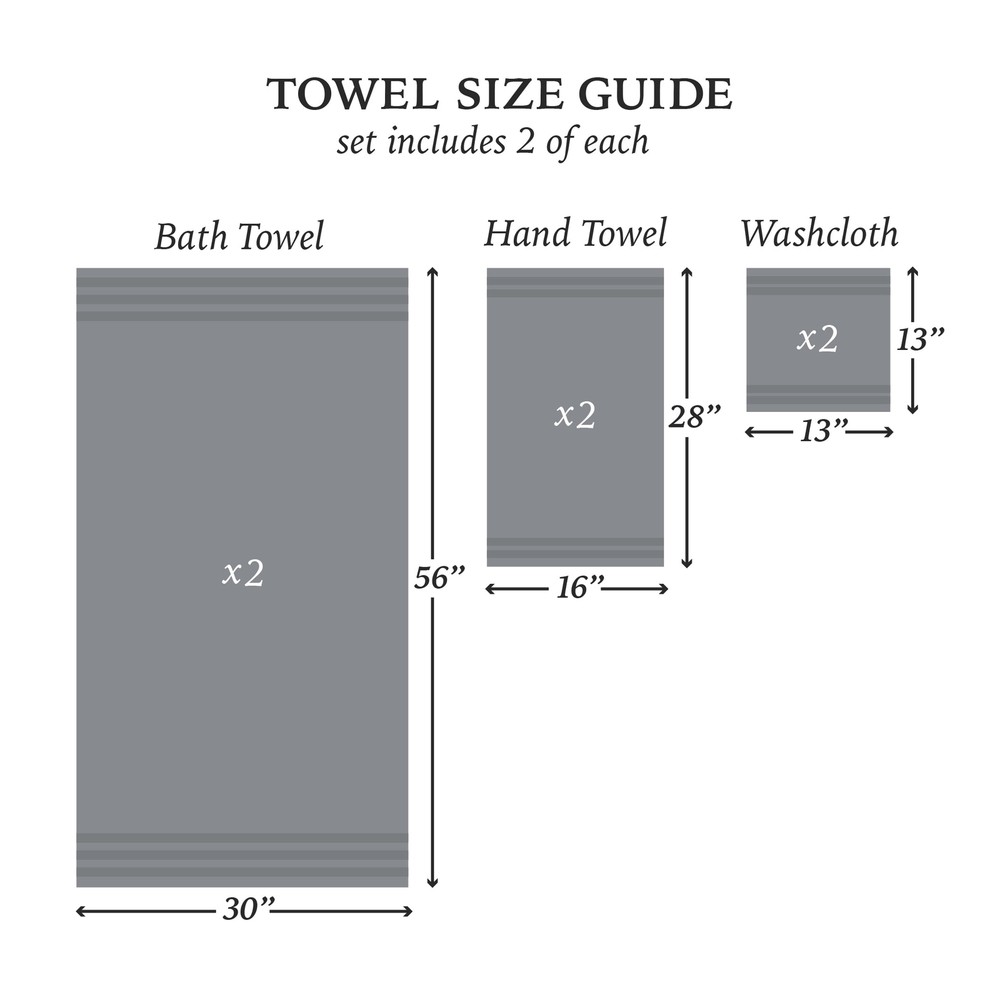 6-PIECE SET INCLUDES: 2 bath towels 30x56, 2 hand towels 16x28, 2 washcloths 13x13 PREMIUM QUALITY: Crafted from responsibly sourced 100% organic cotton FADE RESISTANT: Designed to maintain whiteness wash after wash COMPLETE SET: Comes wrapped beautifully with a ribbon, making it perfect for gifting WASHCARE: Machine wash warm, normal cycle. Do not bleach. Tumble dry low. 6-PIECE SET INCLUDES: 2 bath towels 30x56, 2 hand towels 16x28, 2 washcloths 13x13 PREMIUM QUALITY: Crafted from responsibly sourced 100% organic cotton FADE RESISTANT: Designed to maintain whiteness wash after wash COMPLETE SET: Comes wrapped beautifully with a ribbon, making it perfect for gifting WASHCARE: Machine wash warm, normal cycle. Do not bleach. Tumble dry low. Indulge in spa-like luxury with the Organic Cotton 6-Piece Towel Set in charcoal sky. Made from 100% organic cotton, these premium towels offer superior softness and extra absorbency. Designed to resist fading, these towels will maintain their color after multiple washes. Pair with coordinating Organic Cotton Bath Rugs for a complete look. On Jul 15, 2025 at 01:46:13 PDT, seller added the following information: