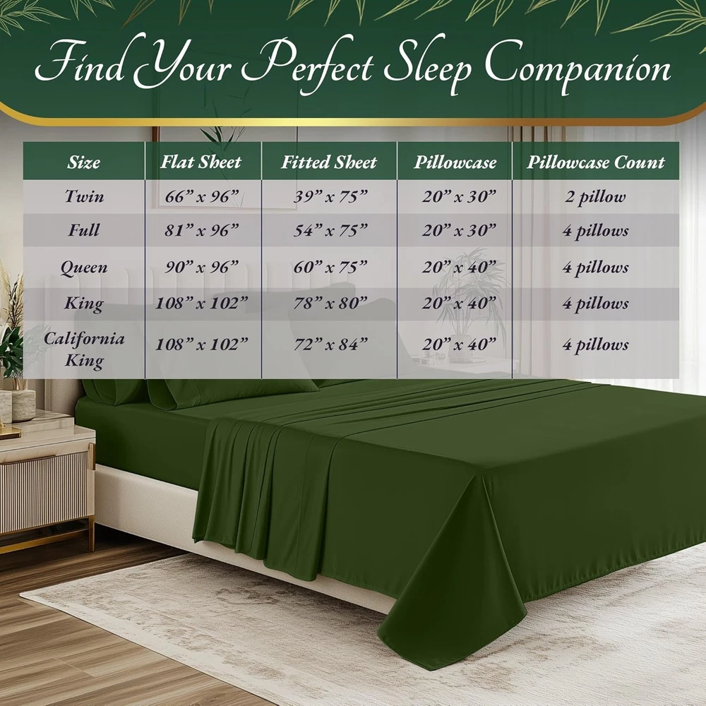 Store New Arrivals Add to Favorite View Feedback Contact 100% Organic Viscose Derived from Bamboo Sheets King Size 6Pcs - Ultra Soft & Luxuriously Cooling, 17" Deep Pocket, Double Stitching, Perfect for Hot Sleepers - King Bed Sheets (Olive) Product Information Style Modern Pillowcase Width 20.5 Inches Weave Type Sateen Pattern Solid Country of Origin China Theme Holiday Number of Pieces 6 Unit Count 1.0 Count Pillowcase Quantity 4 Material viscose derived from bamboo Age Range (Description) Adult Seasons All, Summer, Fall, Spring Package Dimensions 14.13 x 11.02 x 3.94 inches Closure Type Envelope Item Weight 7.52 pounds Pillowcase Length 40 Inches Occasion Mother’s Day, New Year’s, Housewarming, Anniversary, Birthday Fitted Sheet Pocket Depth 17 Inches Special Feature Temperature Regulation, Fade Resistant, Hypoallergenic, Deep Pocket, Wrinkle Resistant Color Olive Thread Count 300 Pillowcase Closure Depth 8 Inches Included Components Pillowcase, Fitted Sheet, Flat Sheet Pillowcase Closure Width 20.5 Inches Size King ABOUT US We are proud to be based in the United States, with all of our products shipping directly from within the country. Our selection includes home décor, furniture, sports equipment, tools, pet products, and more. If you have any questions about our products, we’re always happy to help. SHIPPING We are always working hard to ensure your package arrives as soon as possible. Please understand that some factors like weather, high postal traffic, and the performance of shipping companies are outside of our control. We offer free shipping to the lower 48 states and ship within 2 business days of payment, usually sooner. For shipping outside of the continental USA, we only use eBay's Global Shipping Program. The item is shipped to IL and then sent to the rest of the world. RETURNS We offer Free Returns for 30-Days on items which you are not completely satisfied with. You have the option for a full-refund or an exchange of the item. CUSTOMER SATISFACTION We try our very best to make sure every customer is completely satisfied. If there's a problem, message us! We're happy to help.