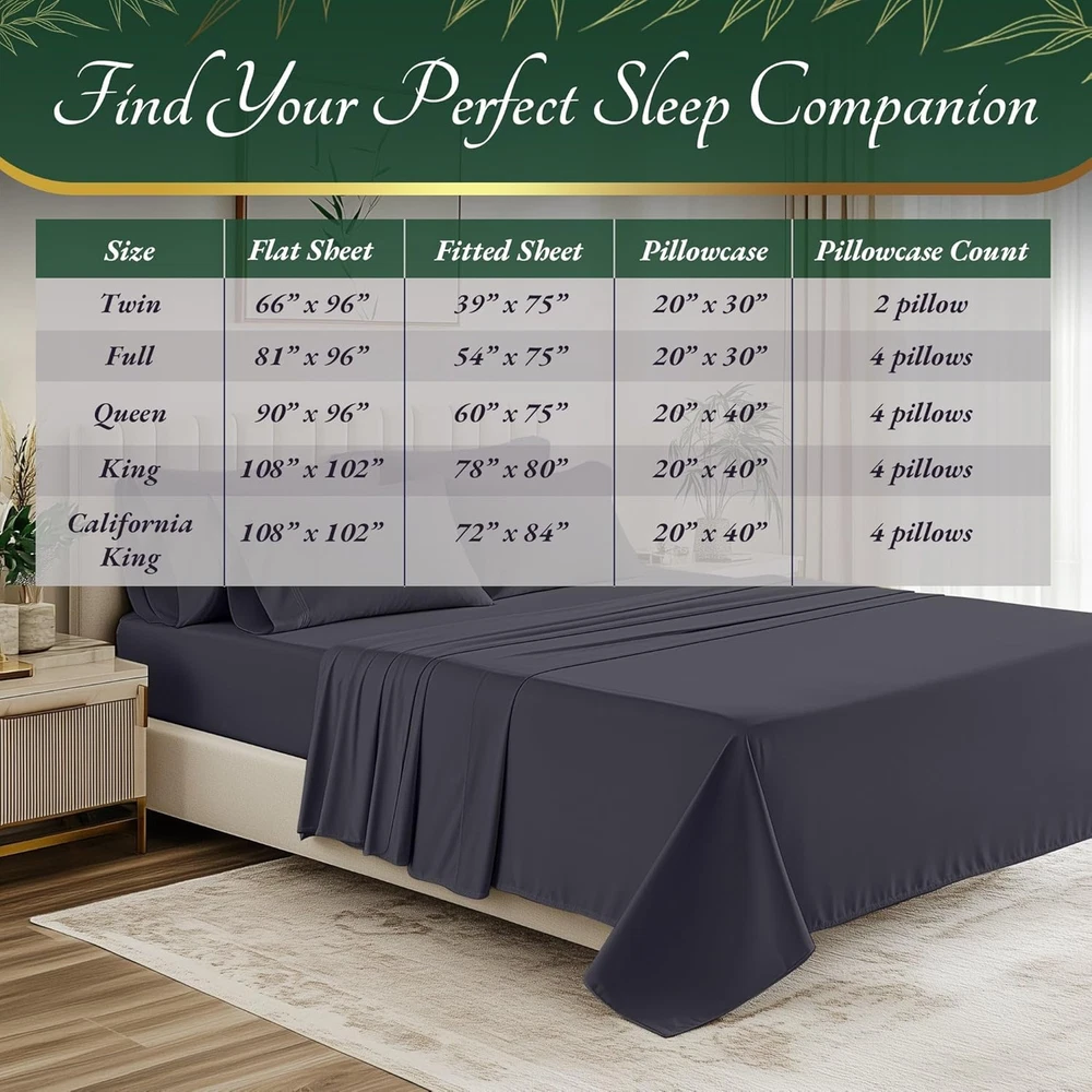 $ 52.8100% Organic Bamboo Viscose King Size Sheet Set 6Pcs - Ultra Soft Luxurious