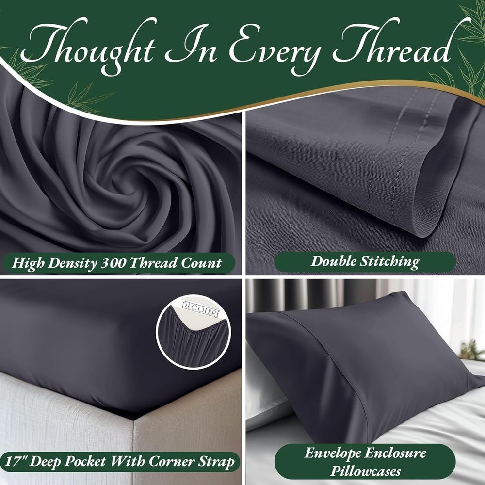 100% Organic Viscose Derived from Bamboo Sheets Queen Size 6Pcs - Ultra Soft & L