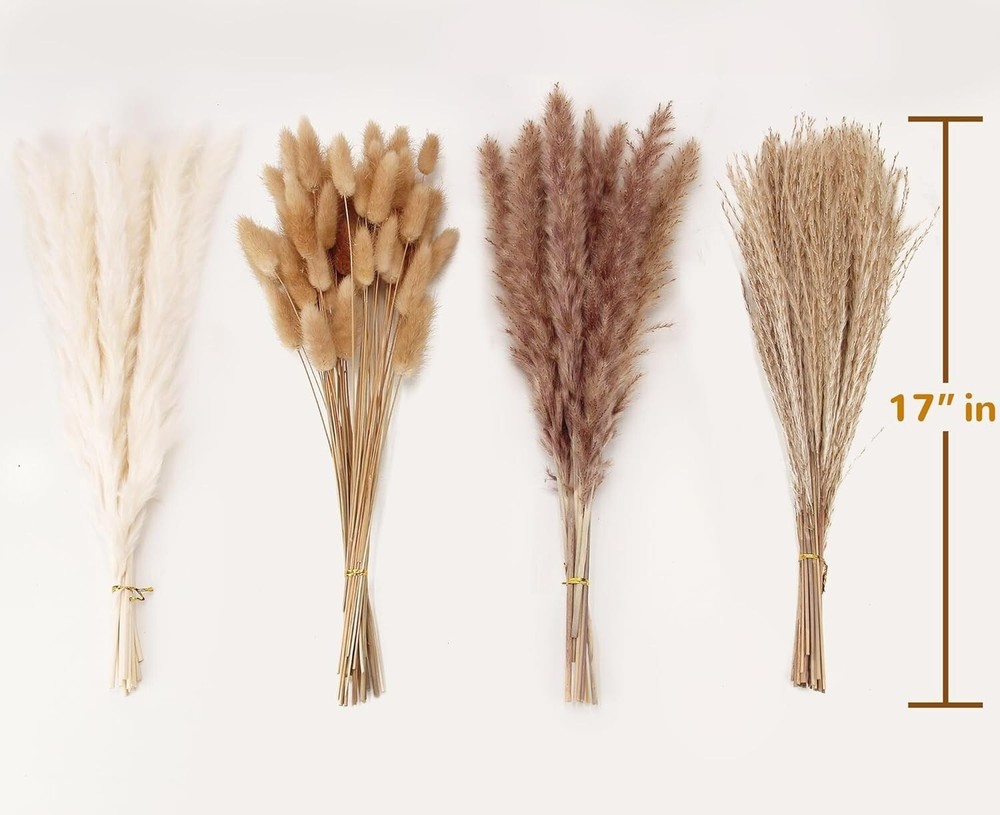 100 PCS De Decoración De Hierba De Pampa De Blanca,Marrón Colas De Conejo NUEVO. MÁS DE UN TIPO DE RAMO DE HIERBA POMPOSA: Decoración de hierba de pampas seca natural cuidadosamente seleccionada, trate de evitar la deformación y rotura de la hierba de pampas seca, 100 piezas de hierba de pampas contienen 50 hierbas de pampas pequeñas, 20 hierbas de caña, 15 pompas blancas, 15 ramas de hierba de pampas marrón (jarrón de hierba de pampas no incluido) llena su jarrón, puede combinarlo con diferentes ramos florales de pompas secas según su preferencia. ESPONJOSO Y SUAVE: Nuestro proceso especial de fabricación de heno hace que la decoración de hierba de pampas seca sea más esponjosa, puede exponer las pampas secas al sol de 2 a 3 horas o más, la decoración de hierba pomposa será más esponjosa y suave, los arreglos florales secos no necesitan riego ni mantenimiento después de que la hierba de pampas seca natural se atienda a su ramo de hierba de pampas otoñal favorito. Puede rociar laca para el cabello para fijar la forma o no, la hierba seca no se marchitará y durará para siempre. ACENTO ELEGANTE: Hierba de la pampa de aproximadamente 17 pulgadas de altura, adecuada para jarrones pequeños de hierba de la pampa, el relleno del jarrón de otoño tiene un color natural y una elegancia general. La paleta de colores suaves y cálidos tiene un ambiente otoñal, un agradable estilo de decoración de fiesta boho adecuado para la decoración de la mesa de la boda boho, el centro de la fiesta, la sala de estar, el dormitorio, la cocina, la casa de campo vintage, la casa de campo navideña, el baño, la oficina, etc. UN REGALO ESPECIAL: La hierba de la pampa viene preempacada en una caja de regalo con una tarjeta de mantenimiento, puede elegir esta hierba de la pampa natural para usted o su familia y amigos, estas plumas de Pambos para arreglos florales son un regalo encantador. RECIBIRÁS: Un total de 100 piezas de decoración mixta de hierba de pampa seca natural, elegantes flores secas para cajas de decoración, tarjetas de mantenimiento para ramos de flores boho secas y nuestro amable servicio.