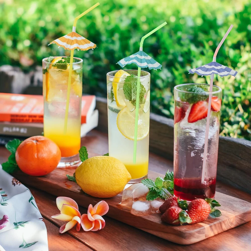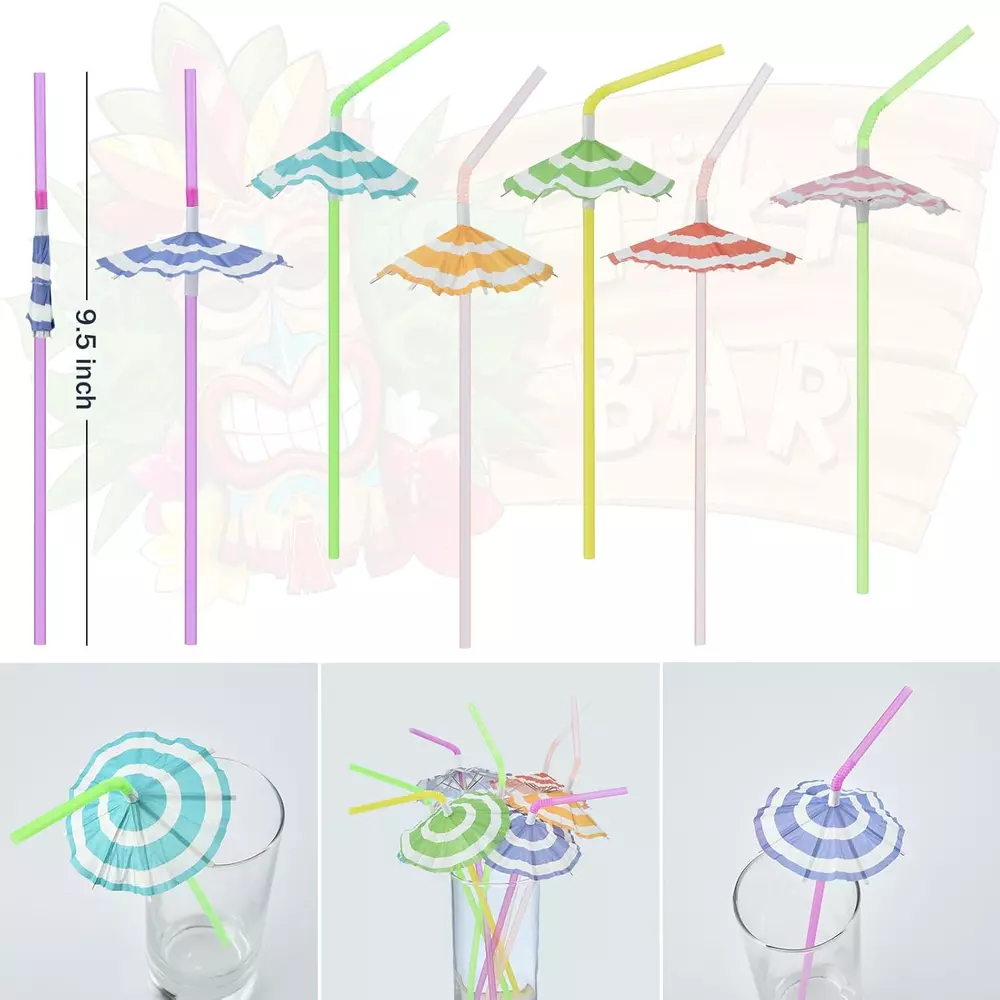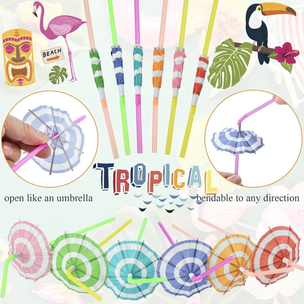 100 PCS Umbrella Straws, Long Cocktail Drink Umbrellas Fancy Flower Bar Straws,
