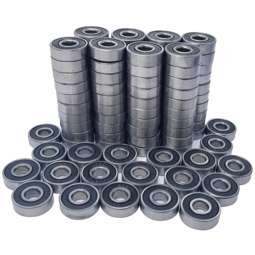 608-2RS miniature radial ball bearing has red double seals and a nylon cage, and conforms to the ABEC 1 precision standard. This light duty bearing has an 8 mm bore diameter, a 22 mm outside diameter, and a 7 mm width. Its precision is rated at ABEC 1 by the Annular Bearings Engineers Committee (ABEC), allowing higher speeds and creating lower friction than less-precise ball bearings, and its radial internal clearance is C3 for radial slack between the inner and outer rings is greater than CN (normal) to compensate for thermal expansion. This bearing is made of ASTM International 52100 steel and heat treated to increase hardness for optimum wear resistance. Its deep ball grooves in both races support high radial and axial loads, its straight bore fits conventional cylindrical shafts, and its nylon cage prevents the balls from coming into contact with each other during use, reducing friction, vibration, and noise. Removable single lip contact seals on both sides protect against contaminants and retain lubrication applied at manufacture. This ball bearing is suitable for use in skate boarding, inline skating, and other skating applications. Single-row radial ball bearing for applications that support radial and axial loads Conforms to the ABEC 1 precision standard for performance within a narrow range of variation Through-hardened 52100 bearing quality steel for optimum wear resistance steel cage evenly spaces balls for reduced friction, vibration, and noise Removable single lip contact seals on both sides to protect against contaminants and retain lubrication