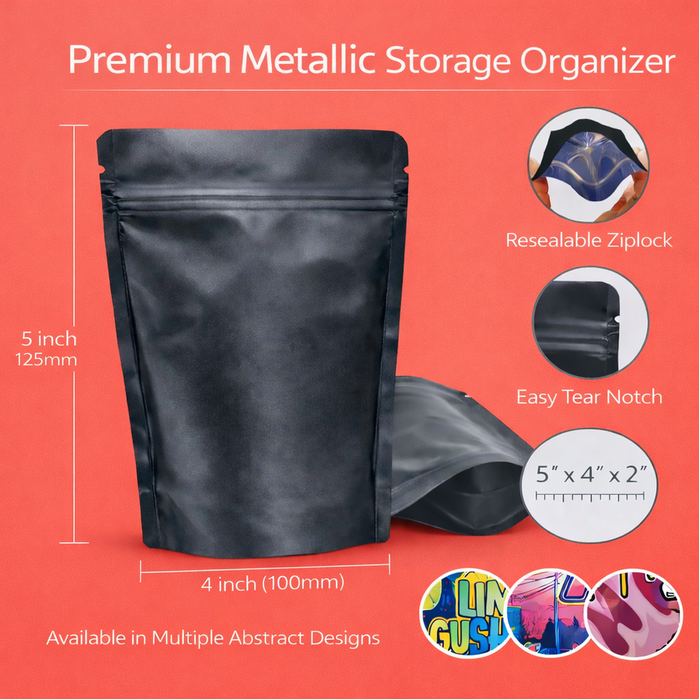 These Storage Pouches are designed for neatly holding and organizing small everyday items. Each piece measures 4 x 5 inches and features assorted printed designs on the exterior. Ideal for storing paper goods, small accessories, stickers, collectibles, craft materials, and lightweight desk items. Sold as a 100-count assorted set. For organization and decorative storage use only. Not intended for food or consumable products