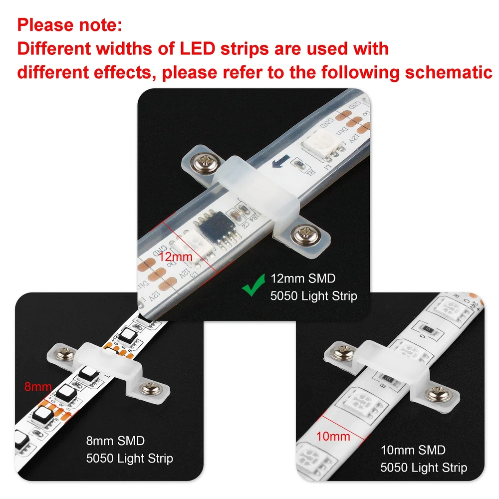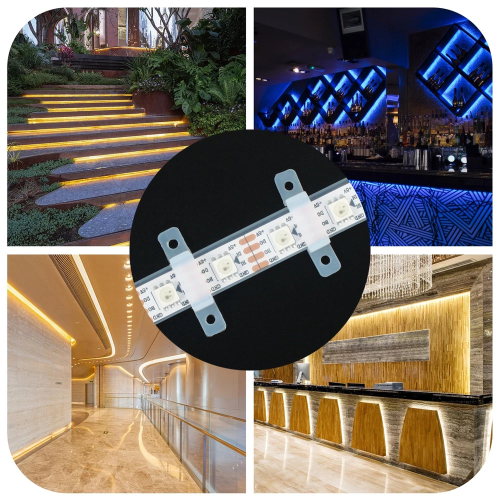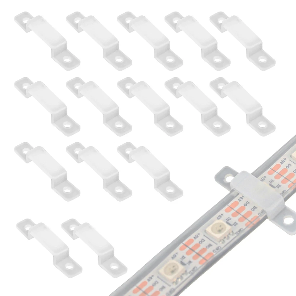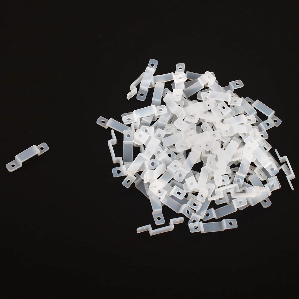 Premium Material: Led silicone holder clips are made of high-quality silicone, corrosion and high temperature resistance, lightweight and durable. the soft body can protect the LED light strips from damage. (screws not included) Ultra thin design: The transparent led strip light clips clip is unobtrusive, does not affect the appearance, and is very suitable for your home decoration. Easy To Install: It is convenient for you to install the led light strips, and using these led silicone mounting bracket, you can hold the led light strips firmly. Wide Application: Led strip light silicone fixing clips is suitable for 10mm wide light strips, such as SMD 5050/5630/3528 10mm wide led strip light. Recommend to use 3-5pcs for 1 meter strip lights. What You Get: Comes with 100 pcs LED strip clips 【 NOTE: Screws Not Included 】The diameter of the screw holes reserved at both ends of these mounting clips is 2.5mm, you need to match the appropriate screws to this size in addition. If you happen to have screws of this size in your hand, then this product will be perfect for you.